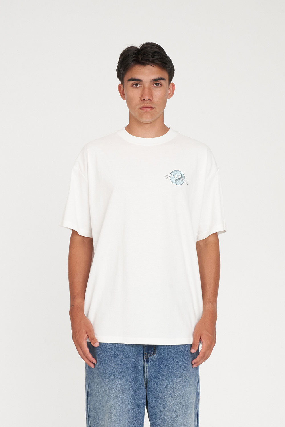 • What you need to know: 100% Cotton, 220gsm, 25mm Neck rib, Premium weight jersey, Relaxed fit, Short sleeve, Huffer branded placement screenprint