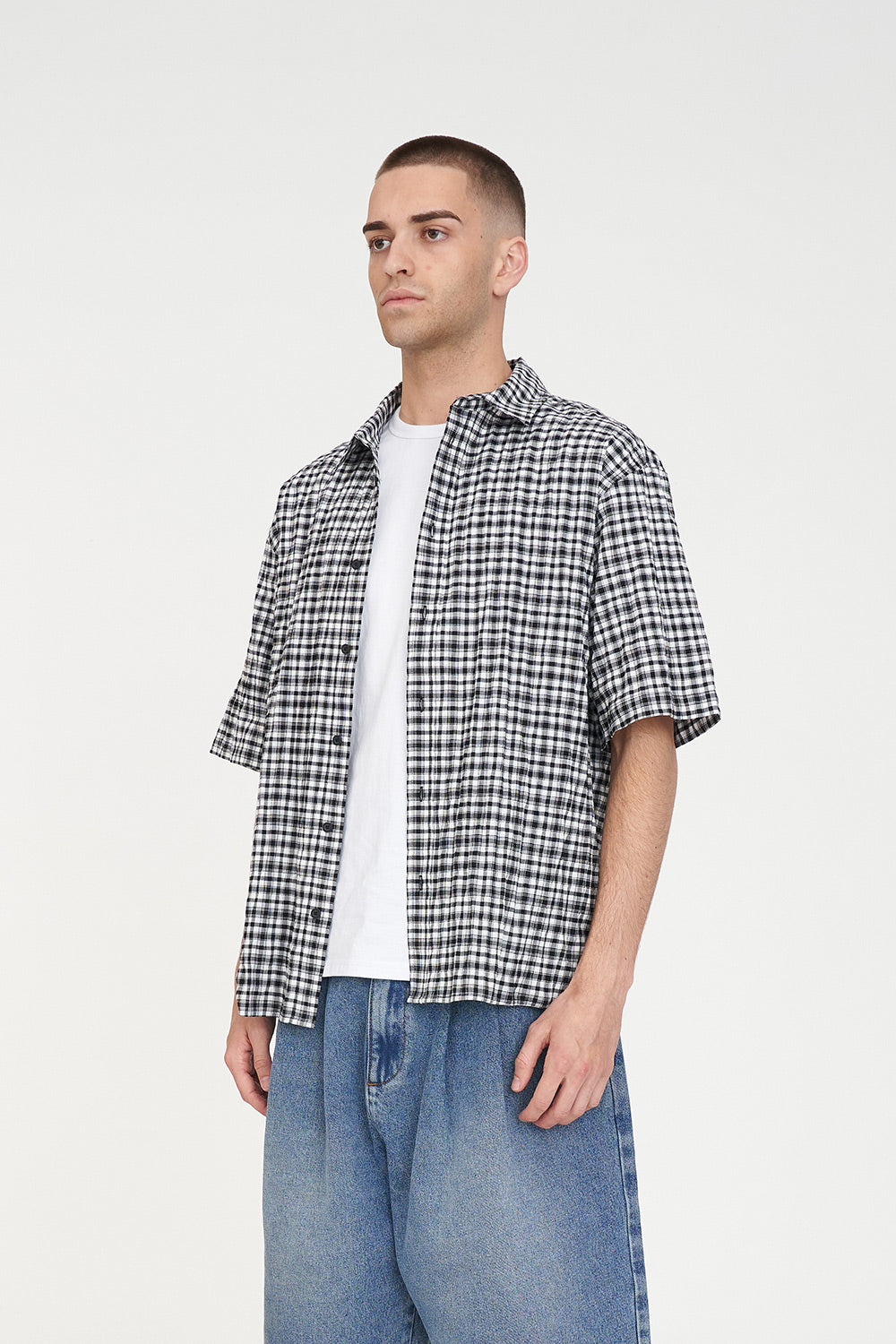 • What you need to know: 100% Cotton, 120gsm, Custom Huffer gingham, Short sleeve, Relaxed fit, Huffer branded buttons, Huffer Embroidery