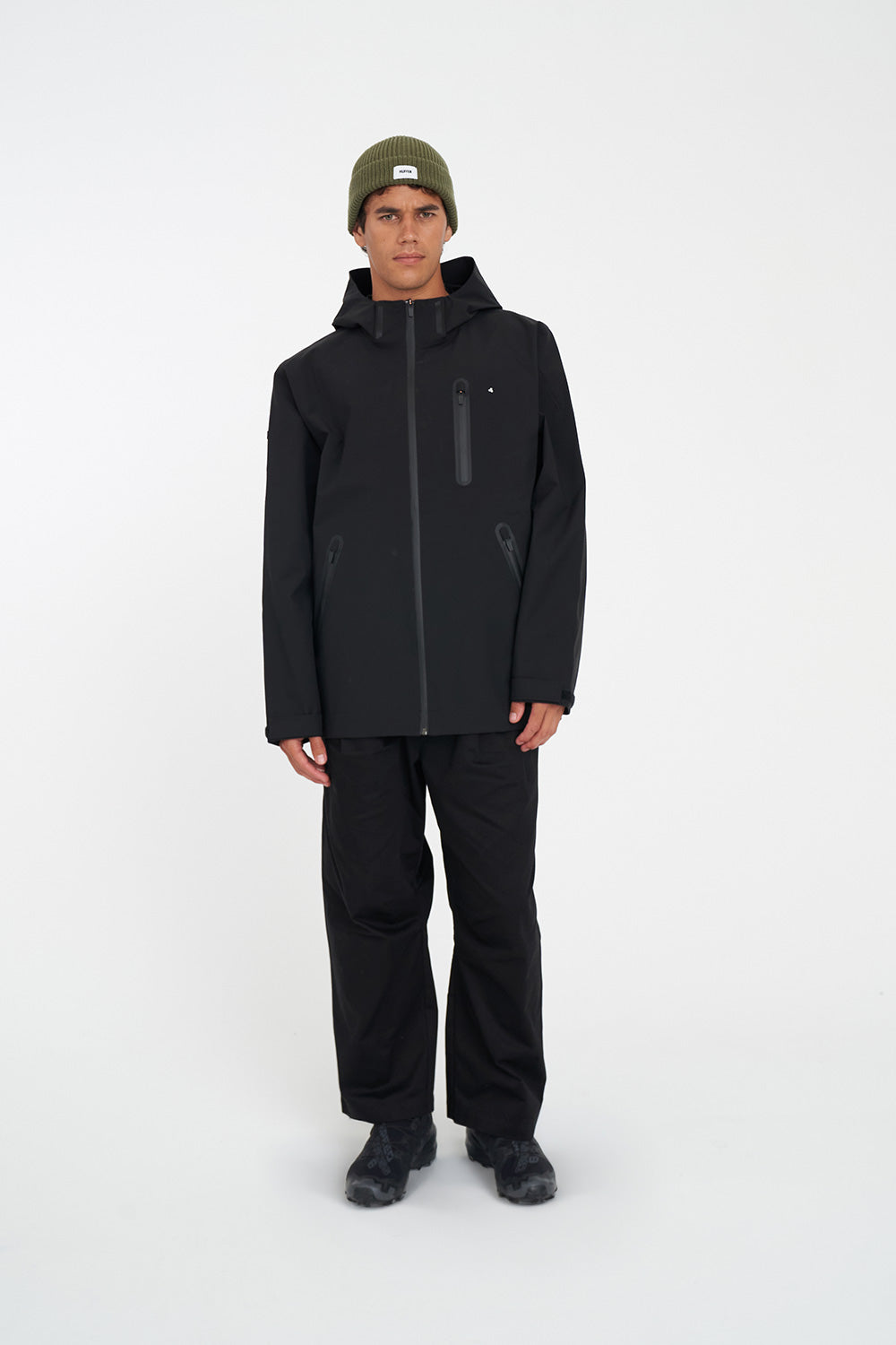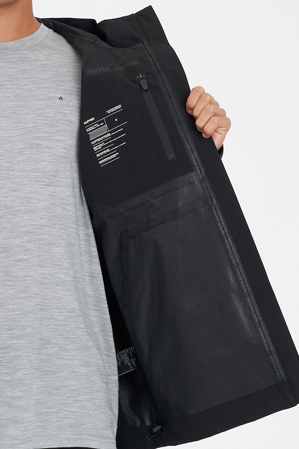 Features 10K waterproof rating, 5K breathability rating 3 layer technology with hydrophilic membrane and tricot backing. Lightweight 145gsm, 100% polyester outer shell with 100% sealed seams and a hood designed for extreme performance and maximum face coverage. Features hood and hem cinch for maximum protection and waterproof YKK zips.