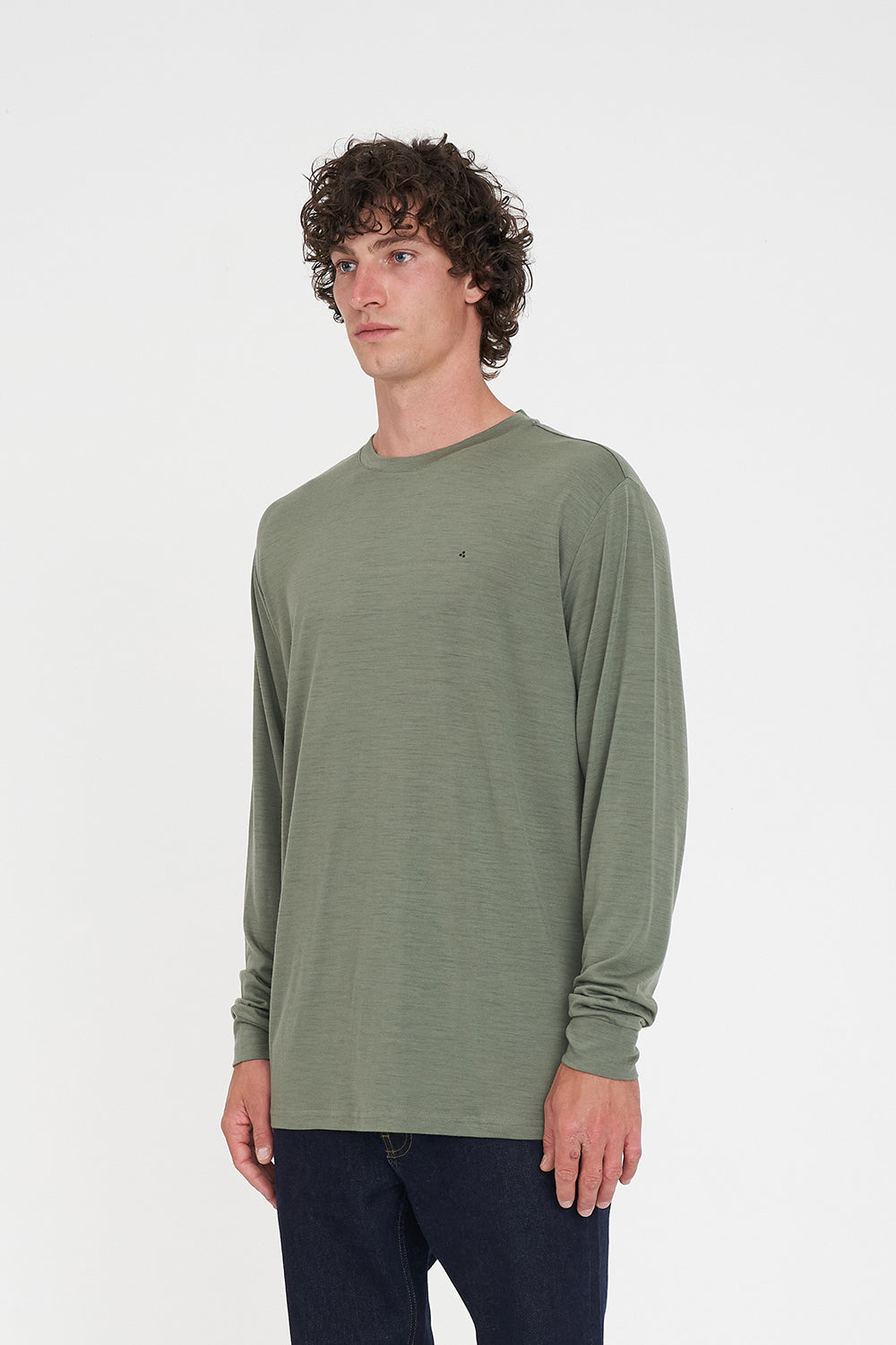 • What you need to know: 91% Merino 9% Nylon, 180gsm, 20mm Neck rib, Durable core spun merino, Classic fit, Long sleeve, Huffer branded placement print