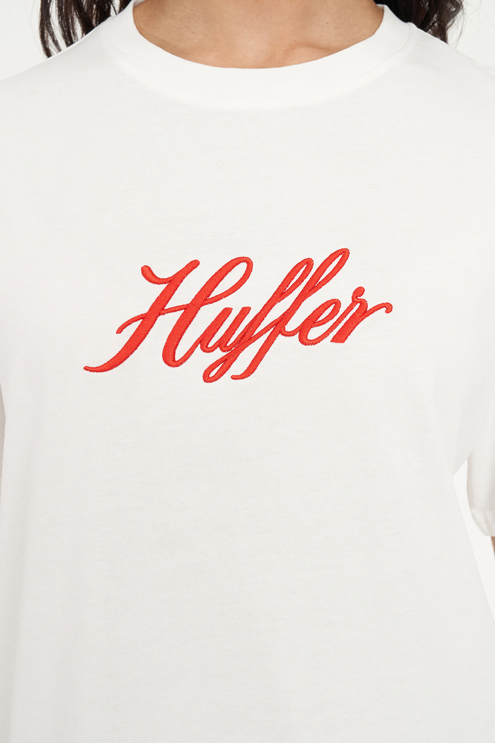 • What you need to know: 100% Cotton, 170gsm, 15mm Neck rib, Standard weight jersey, Custom Huffer piece dyed colour, Classic fit, Short sleeve, Huffer branded placement embroidery