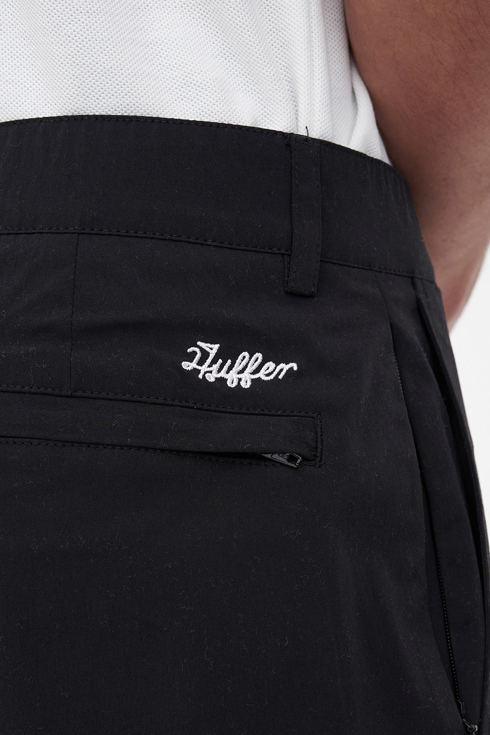 • Here's what you should know: 135gsm 95% Nylon 5% Spandex, a tailored waistband and fly front fastening wide leg short with belt loops, front quarter pockets, a hidden zip in the side seam and back welt pocket with zip fastening - bringing the signature Huffer energy to the course.