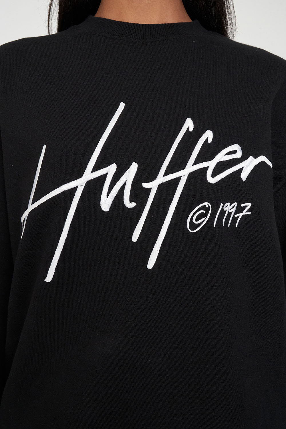 • What you need to know: 100% Cotton, 350gsm, Mid-weight brushback fleece, Custom Huffer colour, Boxy fit, Huffer branded placement print