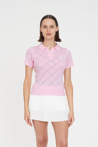 WOMENS DIAMOND KNIT POLO PETAL