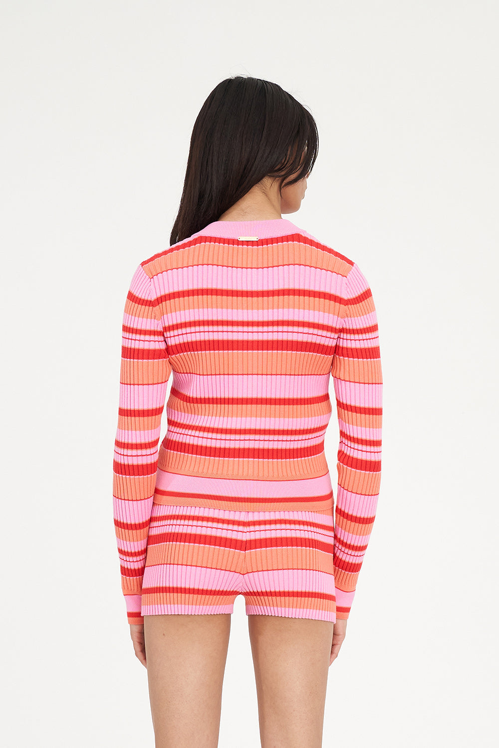 • What you need to know: 72% Viscose 28% polyester, Custom Huffer striped rib, Round neck, Huffer embossed buttons, Huffer branded gold metal plate