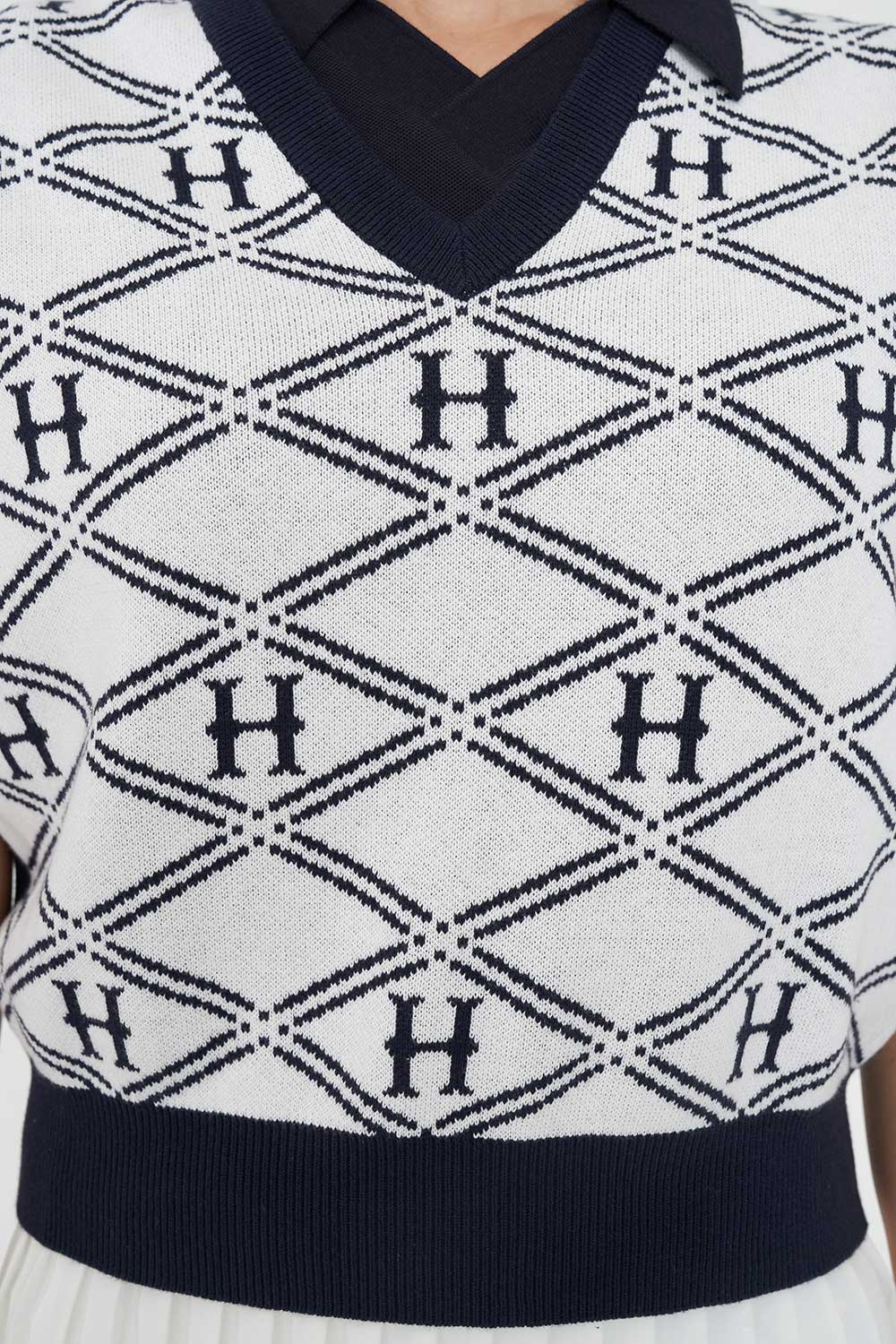 • What you need to know: 100% Cotton, Fully fashioned knit, Custom Huffer intarsia, Sleeveless, V neck detail, Crop length, Huffer branded woven pip