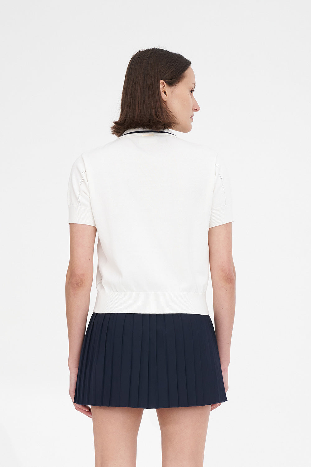 WOMENS LINE KNIT POLO CHALK/NAVY