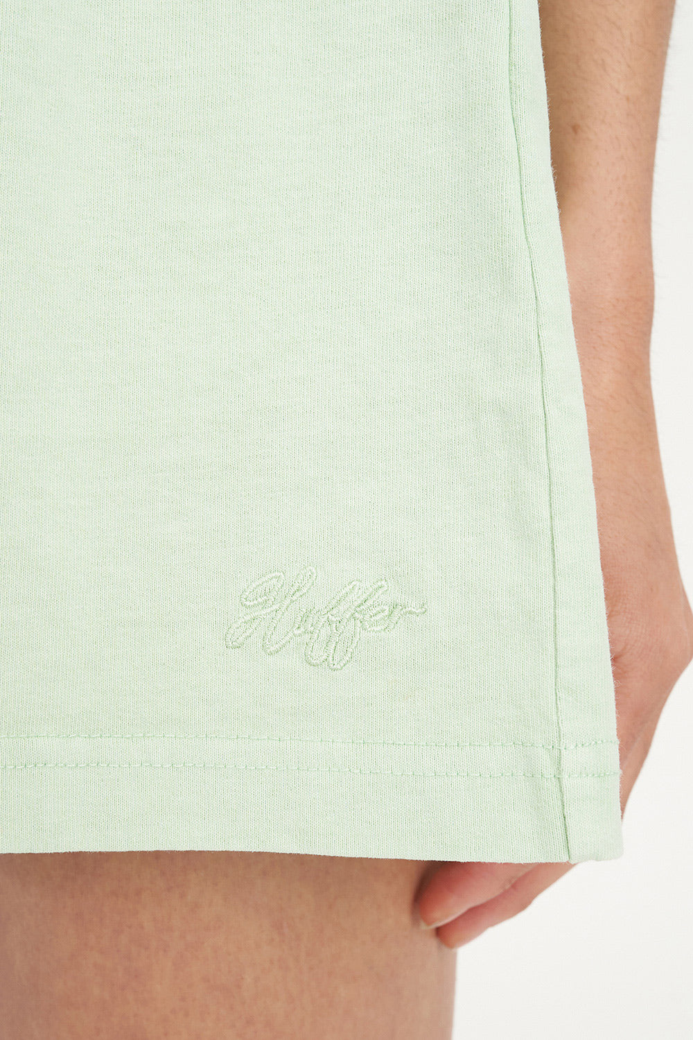 • What you need to know: 100% Cotton, 220gsm, Premium weight jersey, Relaxed fit, Elasticated waistband with drawcord, Garment dyed, Huffer branded placement embroid