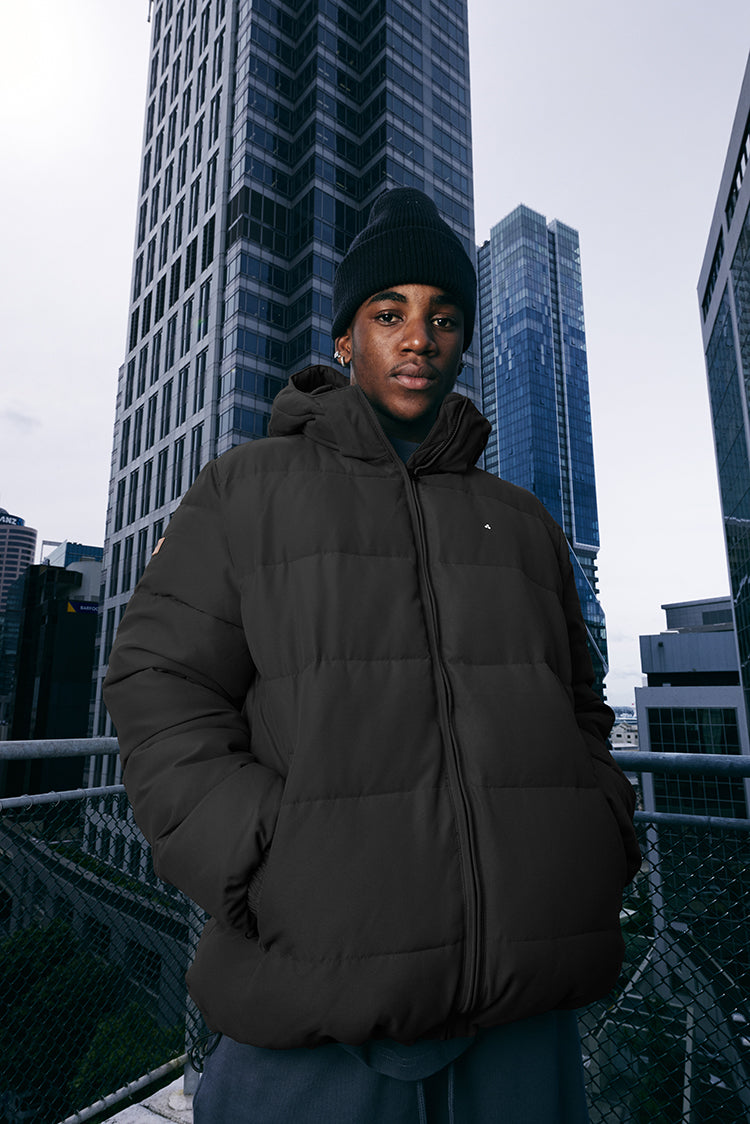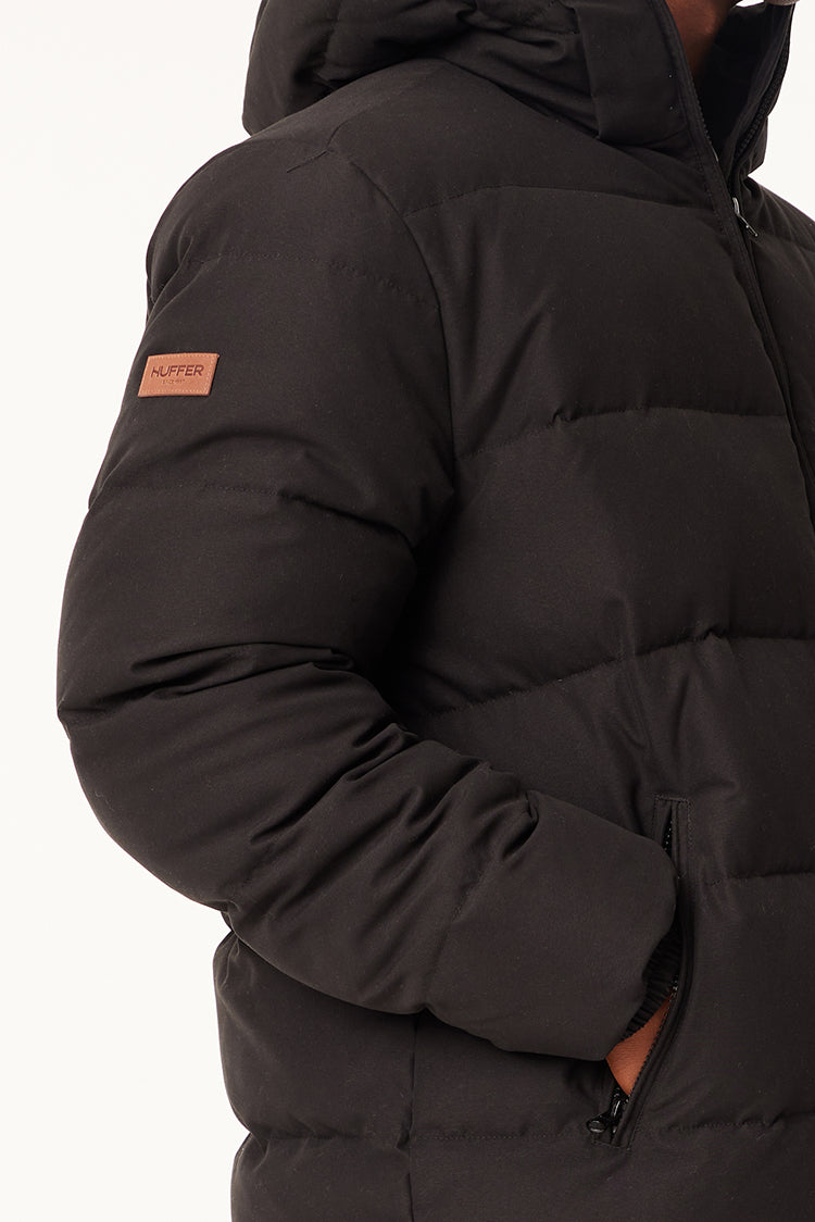 Main: 100% Polyester, Lining: 100% Polyester, Fill: RDS certified by CU 862419 90% Duck Down, 10% Duck Feather / RDS Certified by CU 862419 / 600 Fill Power / Peach finish / Classic fit / Durable water resistant coating / Custom Huffer printed lining / YKK Zips /
