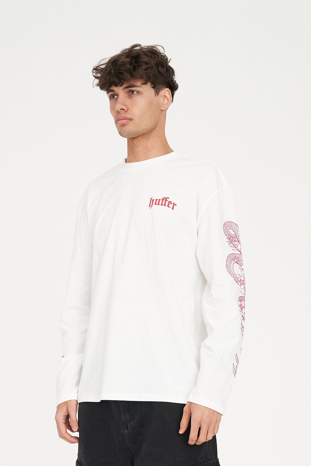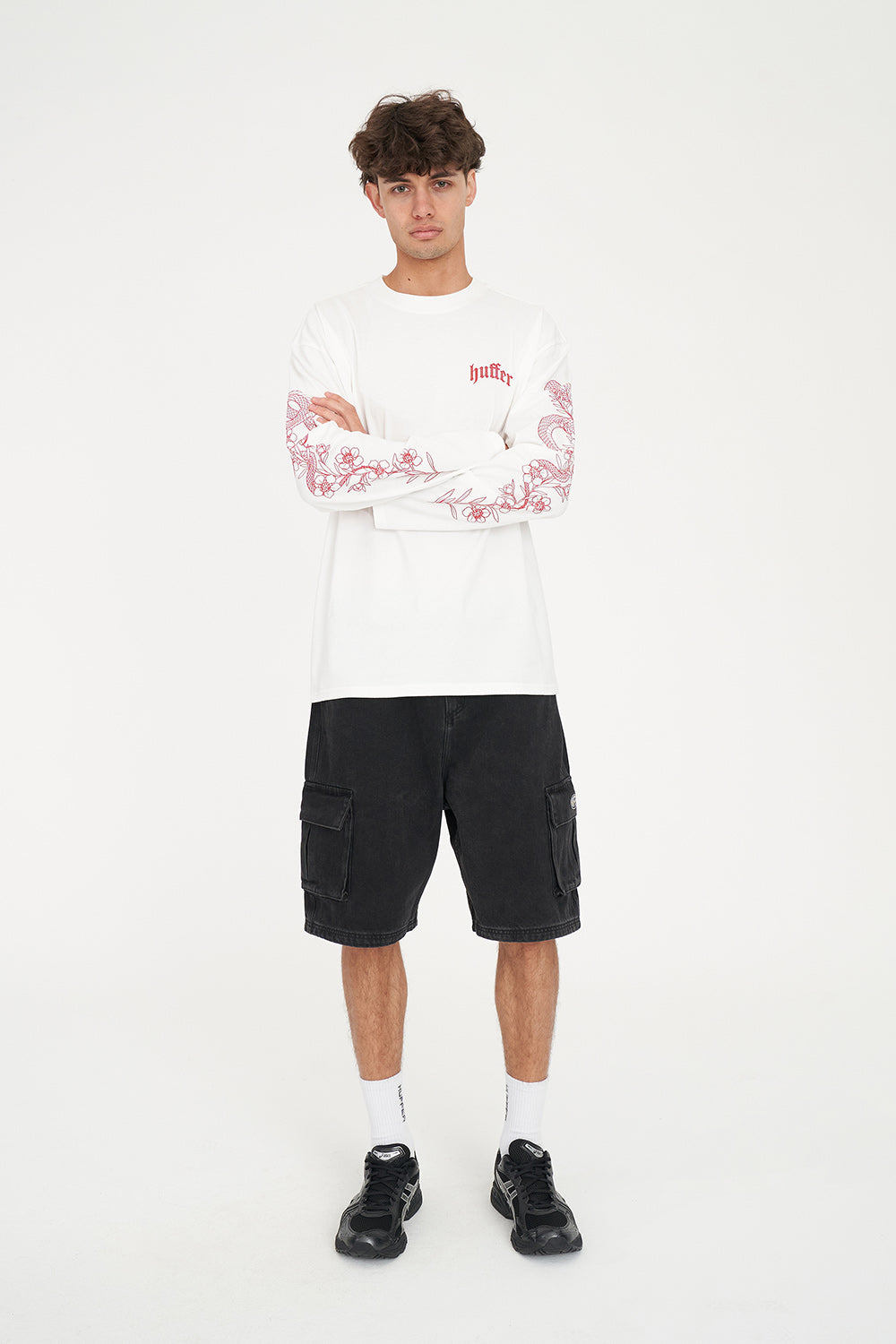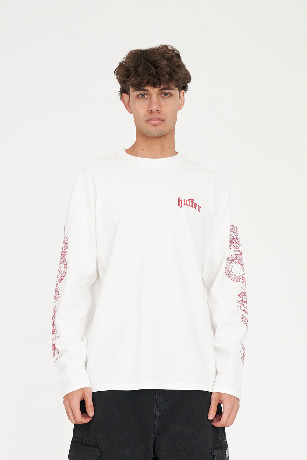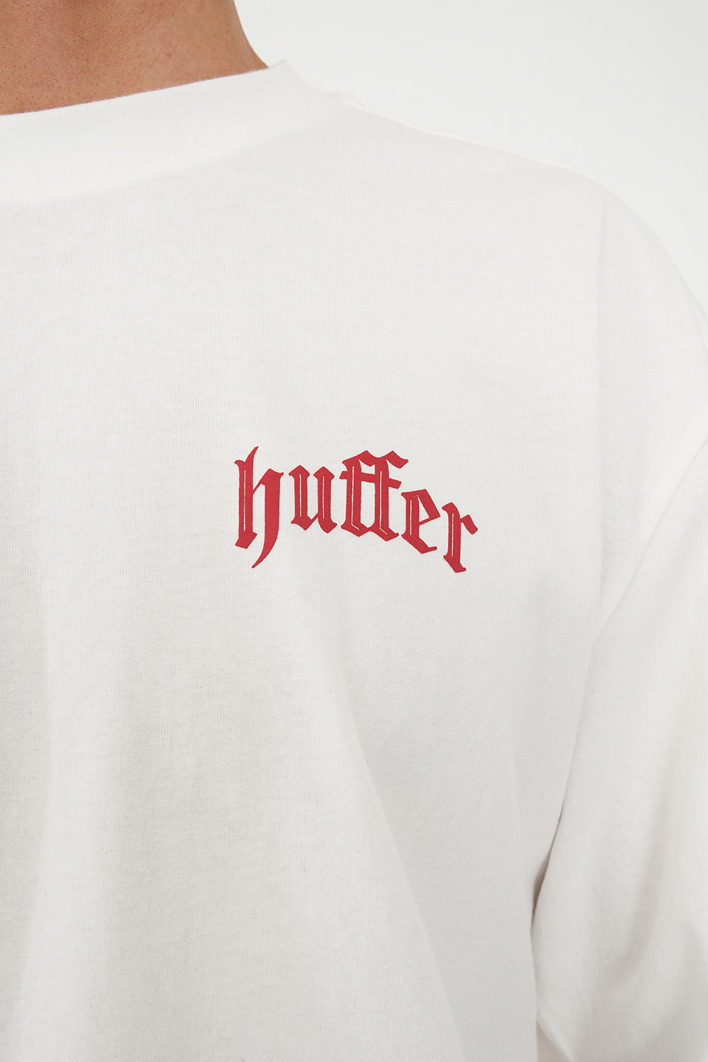 • What you need to know: 100% Cotton, 220gsm, 25mm Neck rib, Premium weight jersey, Custom piece dyed colour, Boxy fit, Long sleeve, Huffer branded placement sleeve & chest embroidery