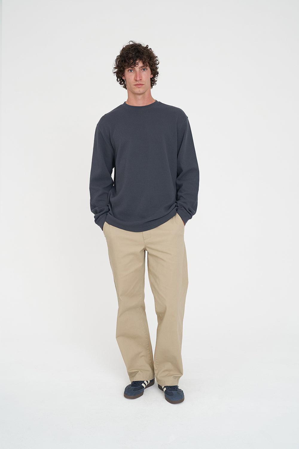 • What you need to know: 100% Cotton, 320gsm, Mid weight waffle knit, 20mm Neck rib, Custom Huffer colour, Classic streetwear fit, Long sleeve, Huffer woven label branding