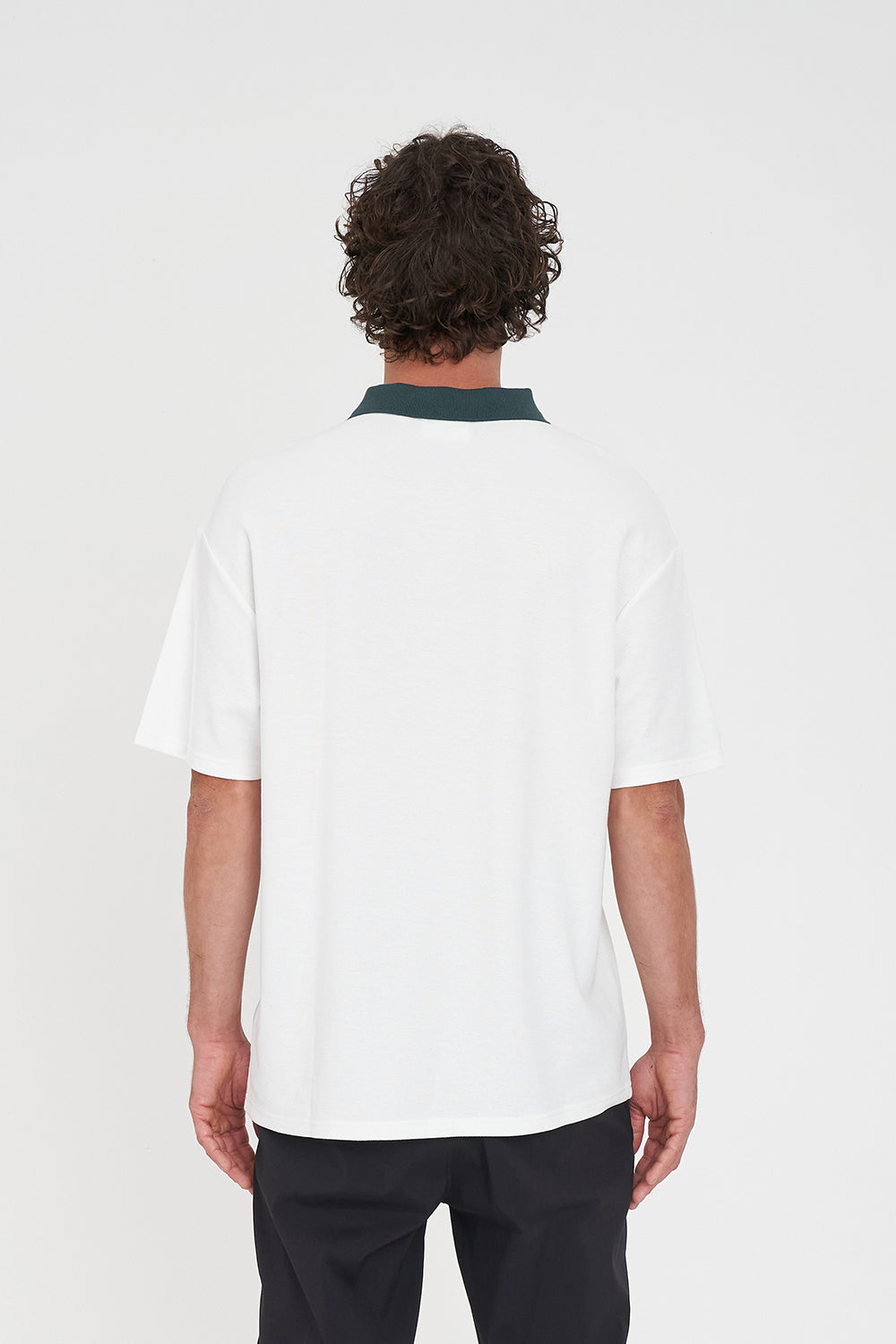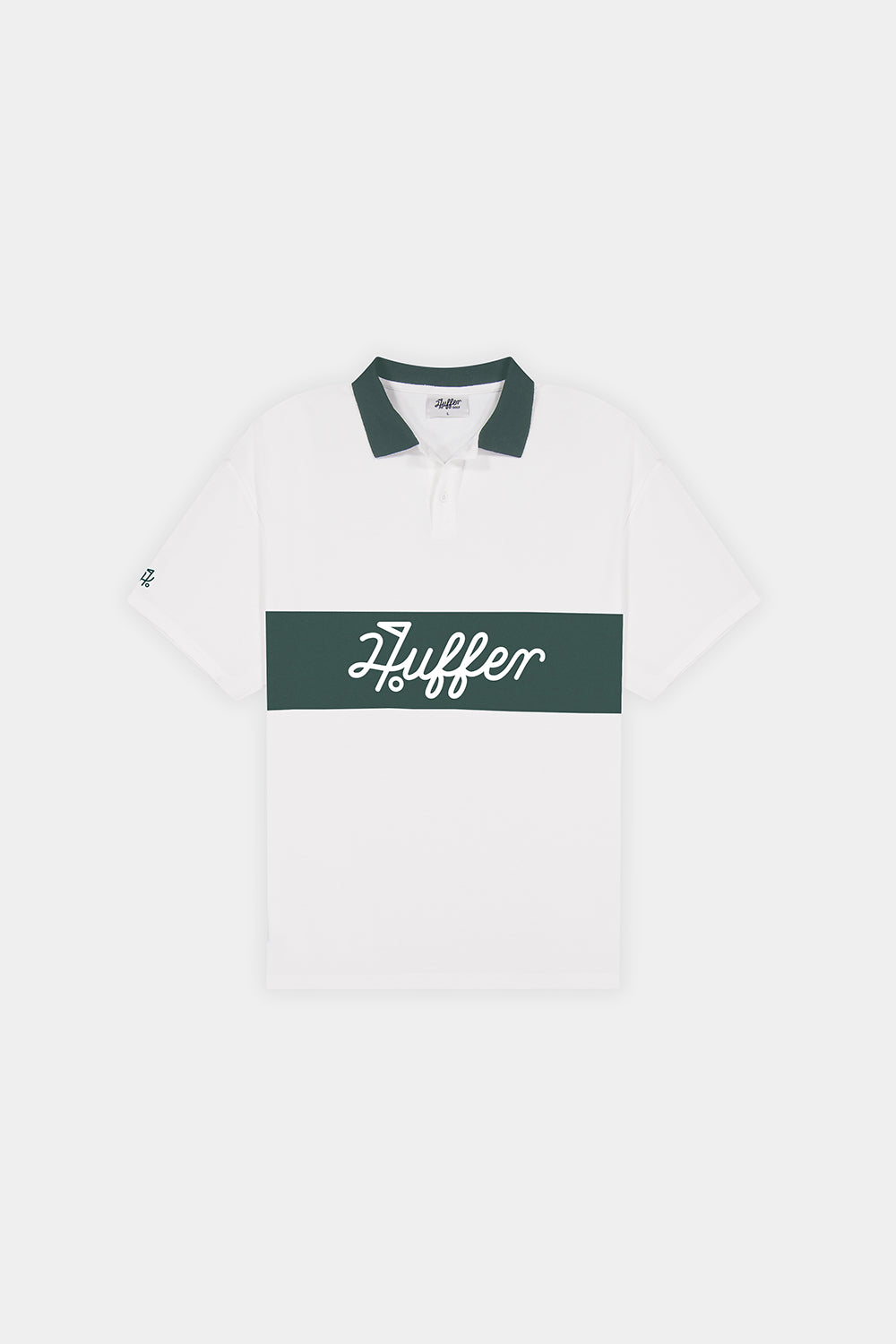 • Here's what you should know: 60% Cotton 40% Polyester Pique, 245gsm, Soft Handfeel, Pique, Boxy streetwear fit, Short sleeve, Rib collar, Button stand and placket, Contrast panel with Huffer branded placement embroidery