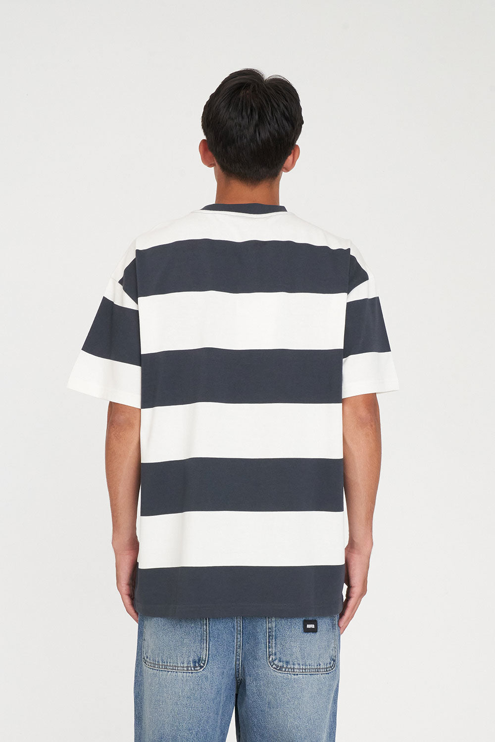 • What you need to know: 100% Cotton, 280gsm, Rugby knit, 25mm Neck rib, Custom Huffer yarn dyed stripe, Relaxed fit, Short sleeve, Huffer branded placement embroidery