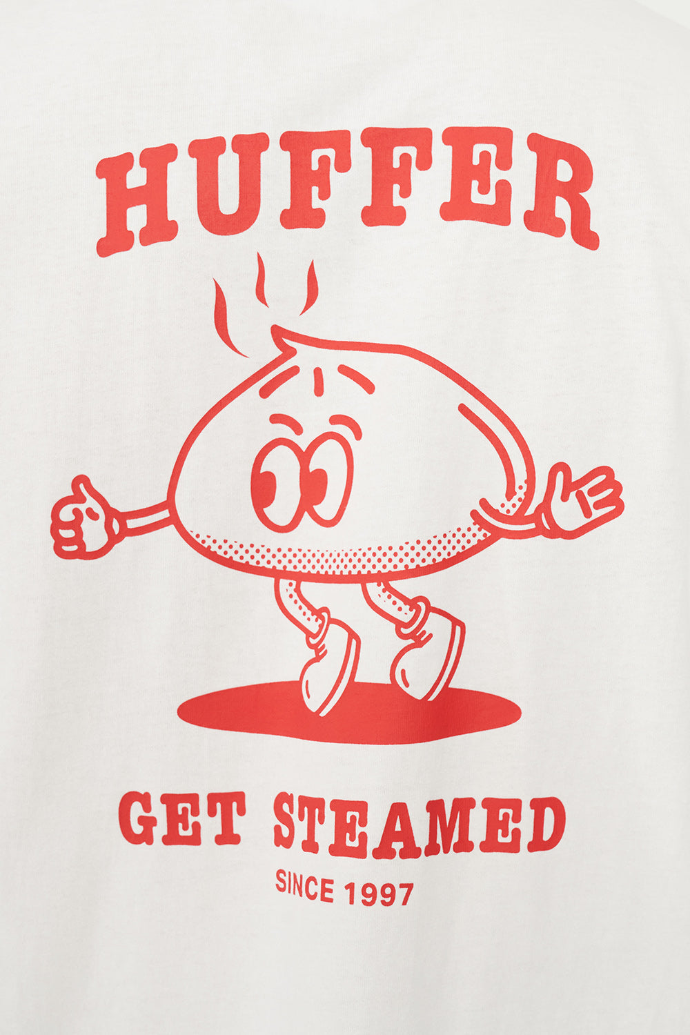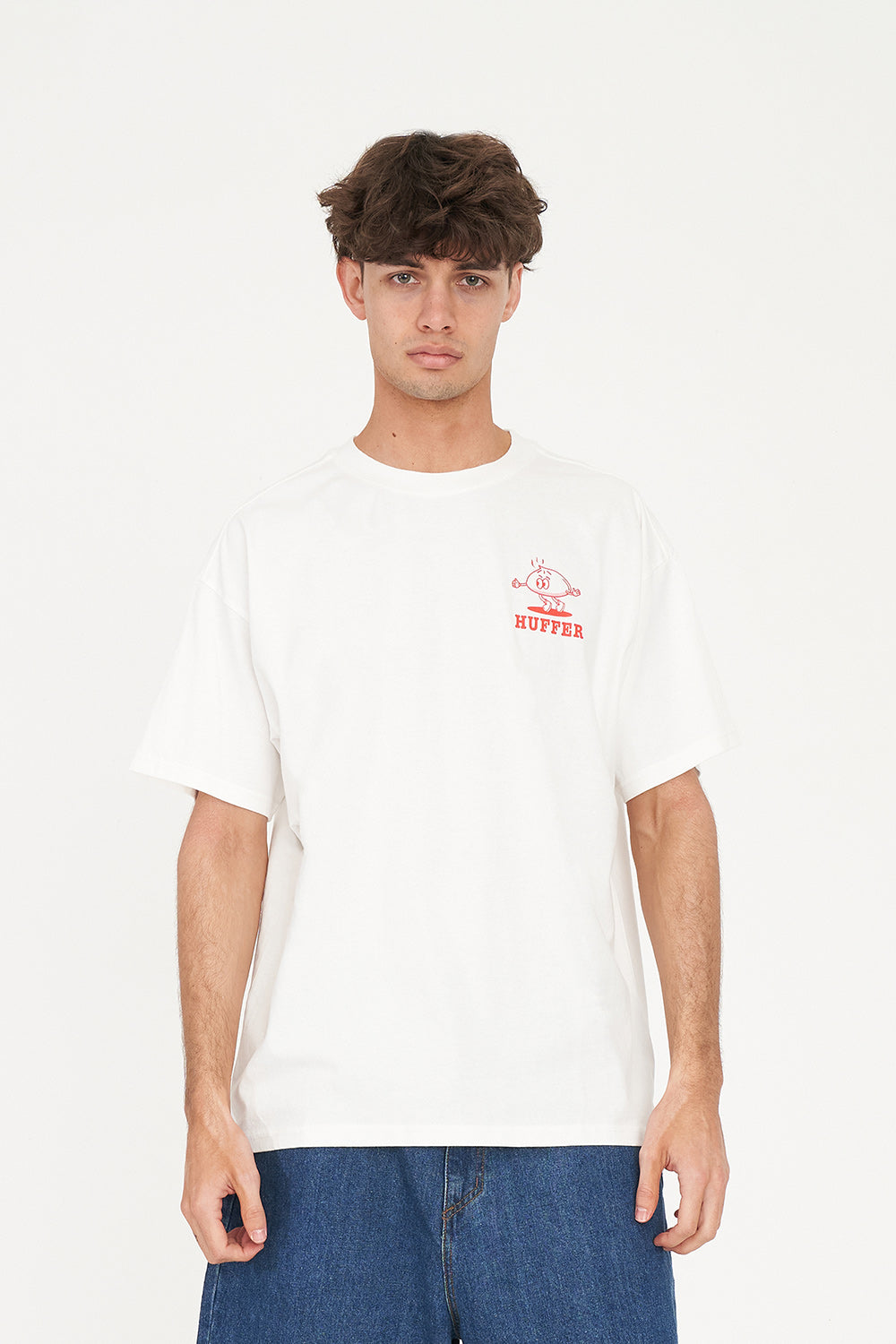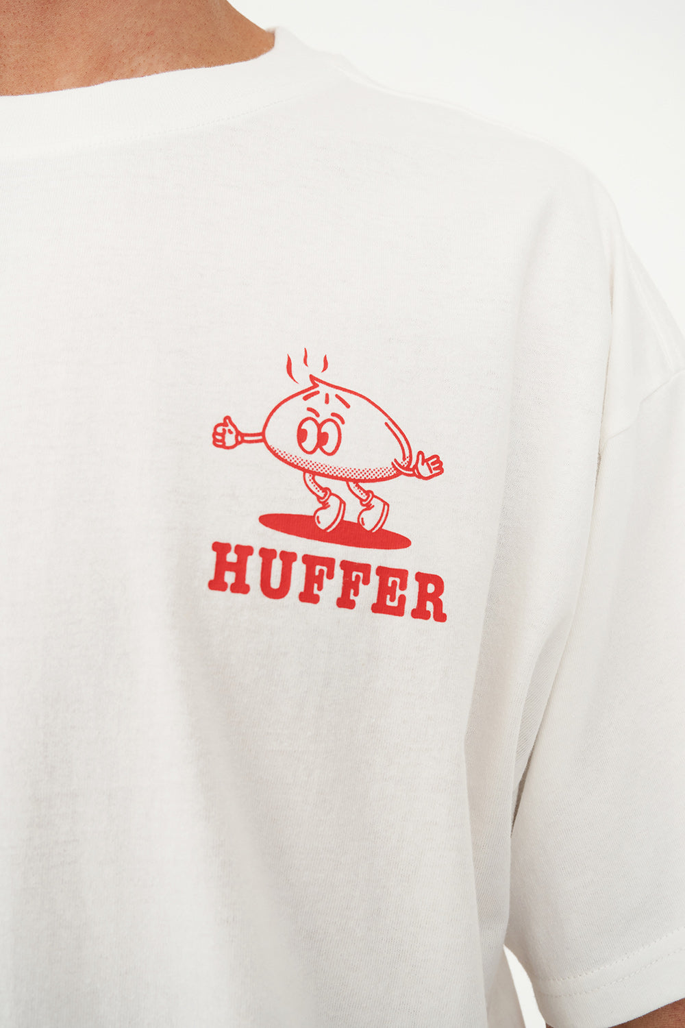 • What you need to know: 100% Cotton, 220gsm, 25mm Neck rib, Premium weight jersey, Boxy fit, Short sleeve, Huffer branded placement screenprint