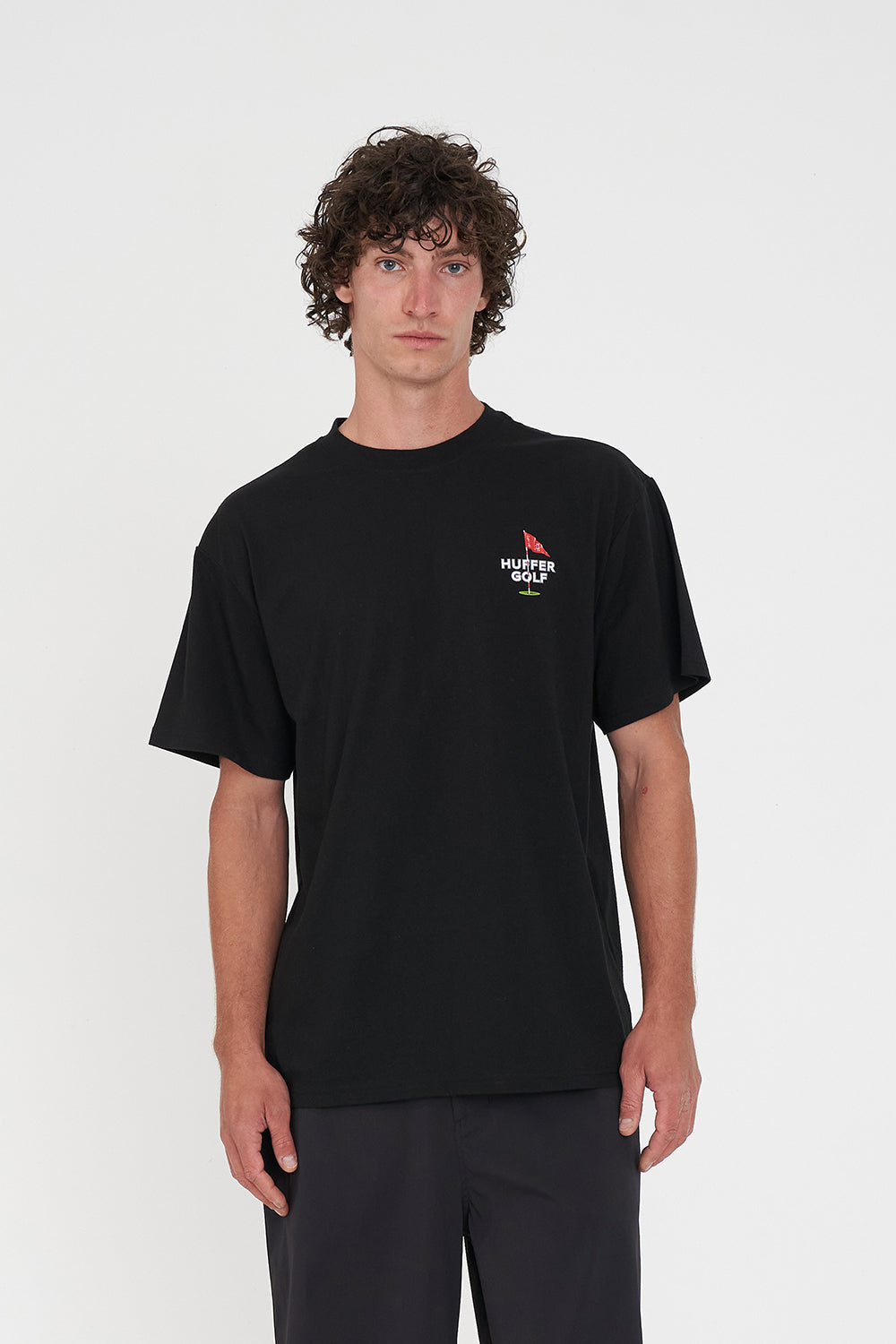 • Here's what you should know: 100% Cotton, 220gsm, 25mm Neck rib, Premium weight jersey, Relaxed fit, Short sleeve, Huffer branded placement screenprint