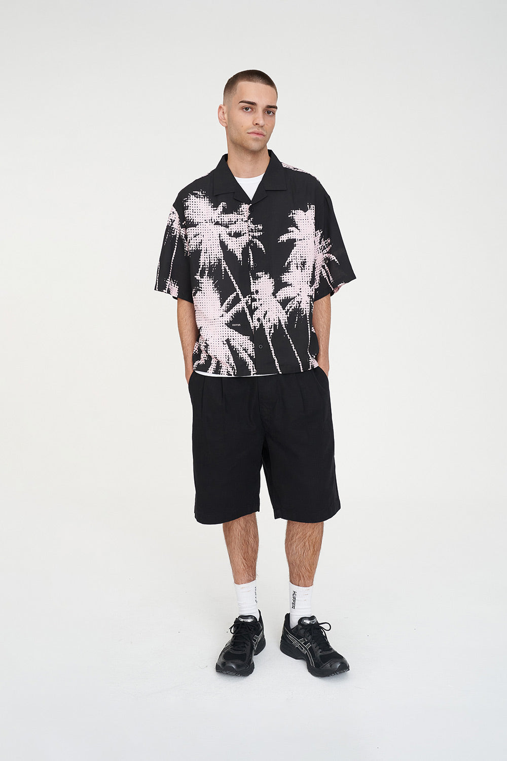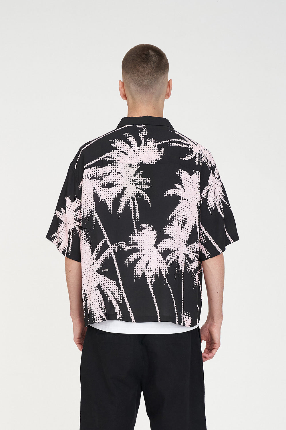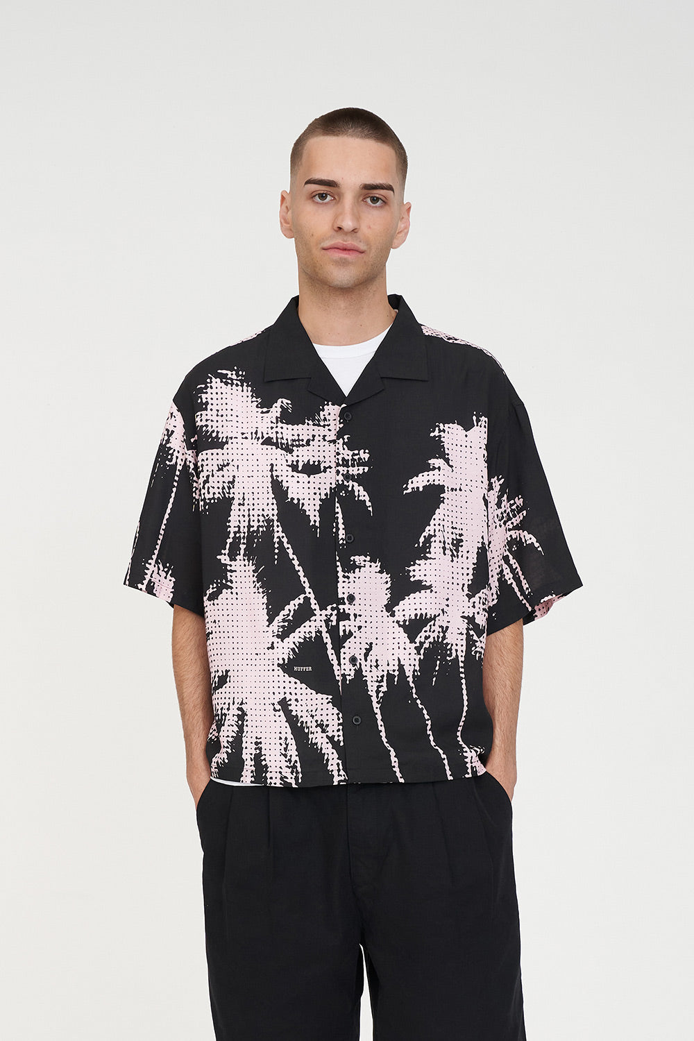 • What you need to know: 100% Viscose, 160gsm, Custom Huffer print, Short sleeves, Relaxed fit, Crop length, Camp collar, Huffer branded buttons