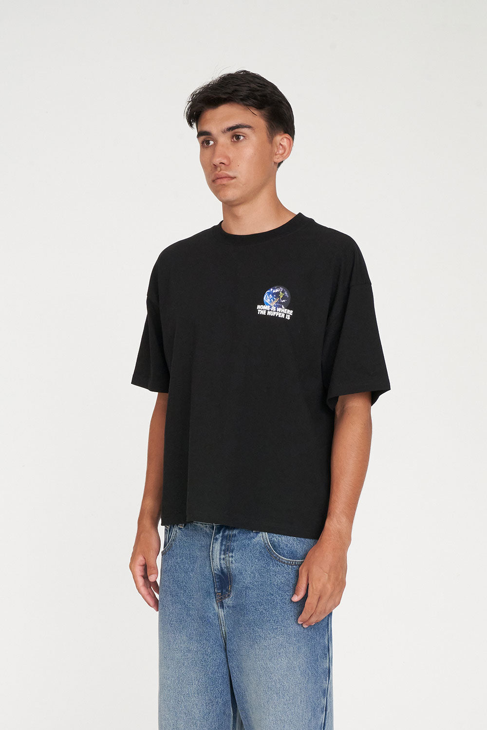 • What you need to know: 100% Cotton, 220gsm, 25mm Neck rib, Boxy cropped fit, Short sleeve, Huffer branded placement digital print & puff print