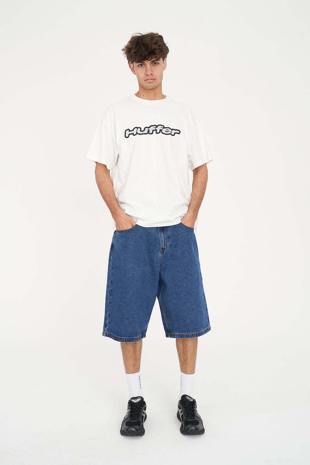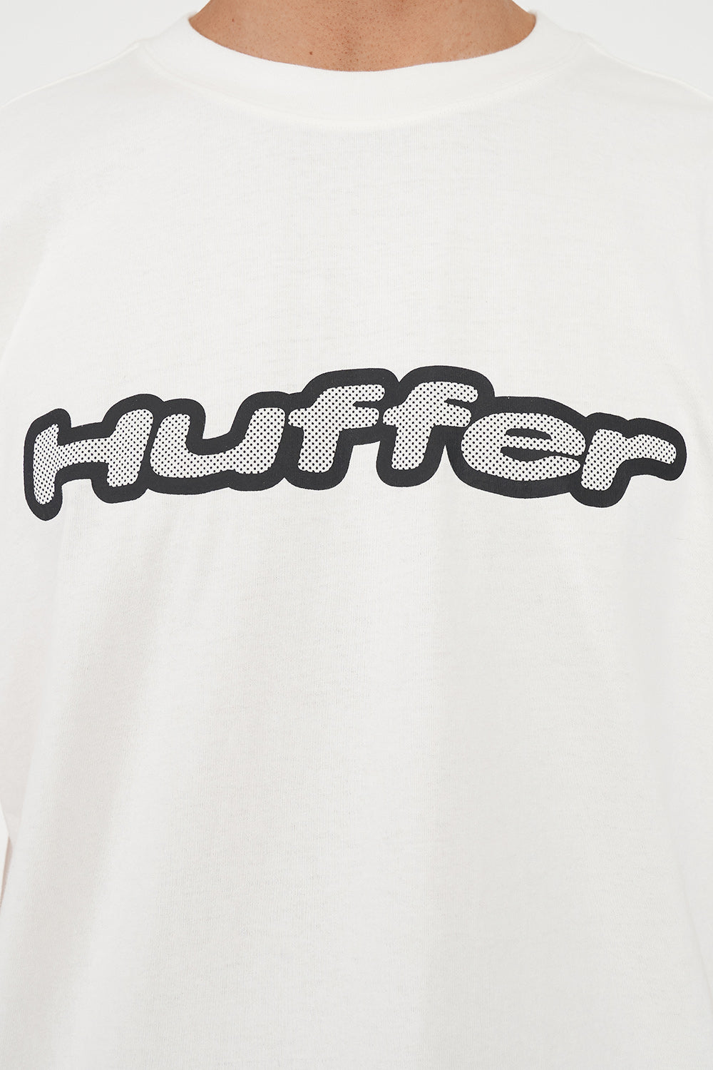 • What you need to know: 100% Cotton, 220gsm, 25mm Neck rib, Premium weight jersey, Boxy fit, Short sleeve, Huffer branded placement screenprint