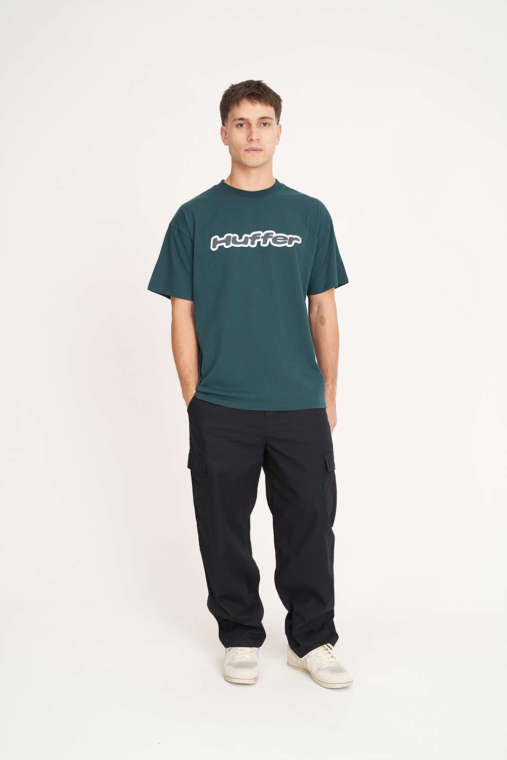• What you need to know: 220gsm 100% Cotton, 25mm neck rib, premium weight jersey, short sleeve, boxy fit with Huffer branded placement screenprint