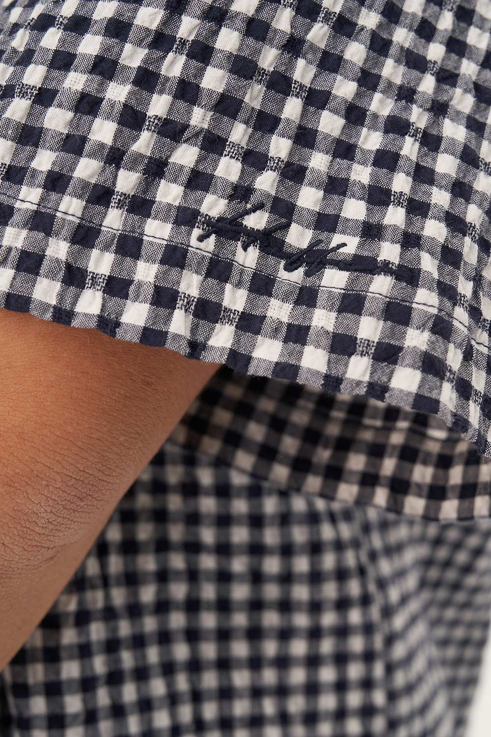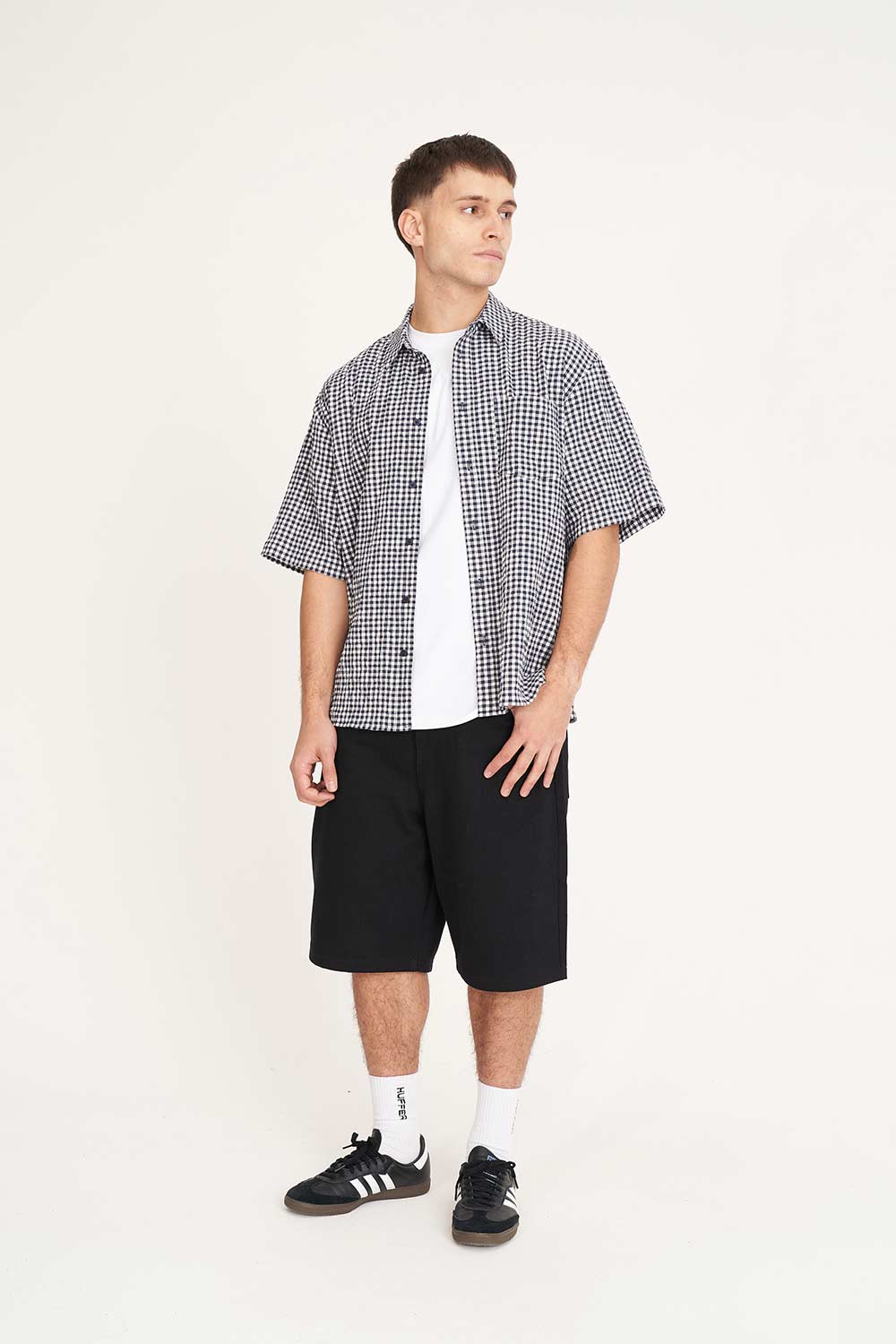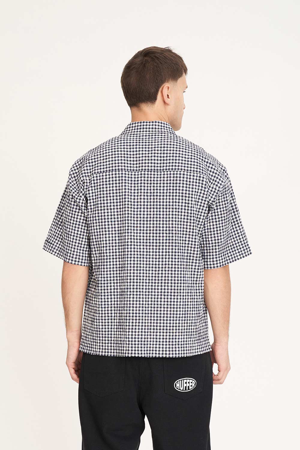 • What you need to know: 140gsm 95% Cotton 5% Elastane, custom Huffer gingham, short sleeve, relaxed fit, Huffer branded buttons with Huffer branded woven label & embroidery