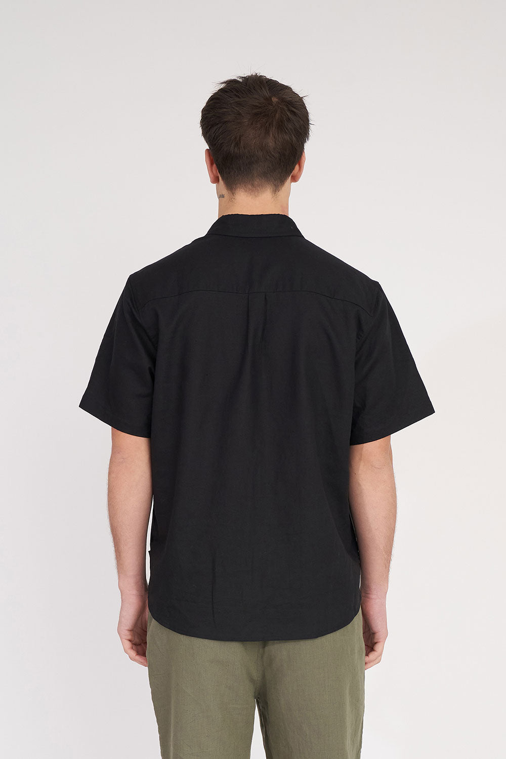 • What you need to know: 150gsm 55% Linen 45% Cotton, short sleeve, relaxed fit, camp collar, Huffer branded buttons and Huffer branded woven label