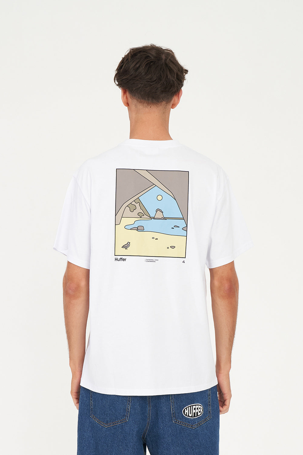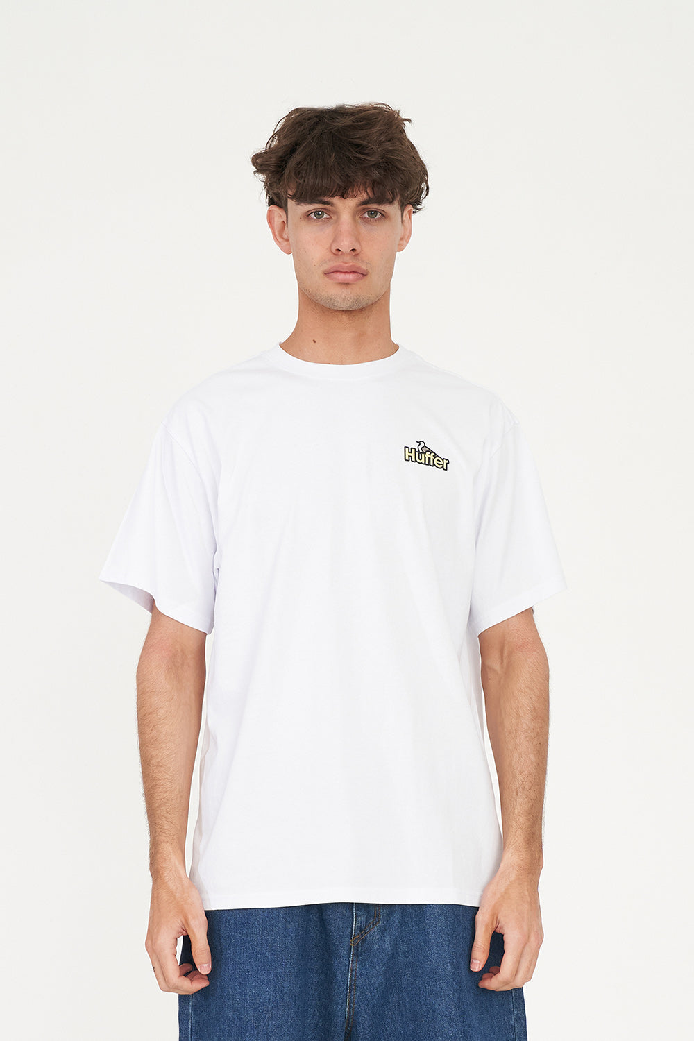 • What you need to know: 100% Cotton, 190gsm. 20mm Neck rib, Classic streetwear fit, Short sleeve, Huffer branded placement screenprint