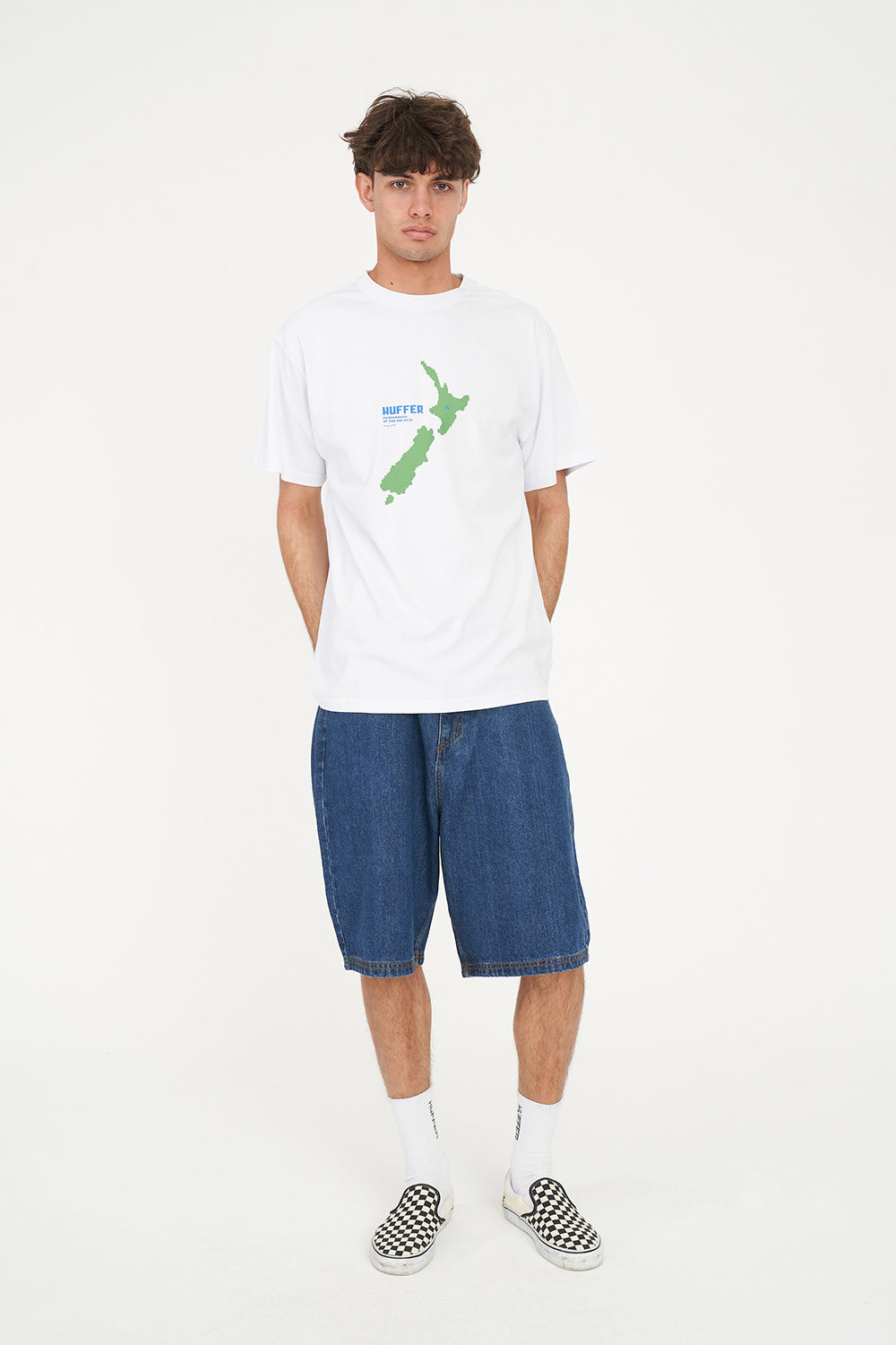 • What you need to know: 100% Cotton, 190gsm, 20mm Neck rib, Classic streetwear fit, Short sleeve, Huffer branded placement screenprint