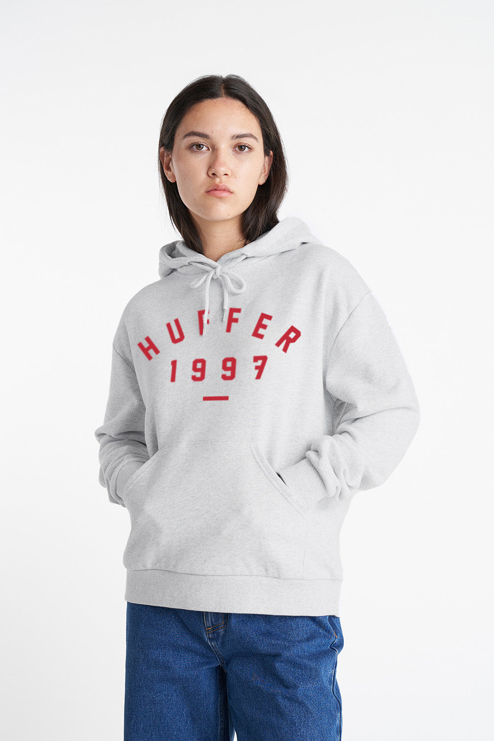 100% Cotton / 300gsm / Mid weight brushback fleece / Self-lined hood / Front kanga pocket detail / Classic fit / Huffer placement print