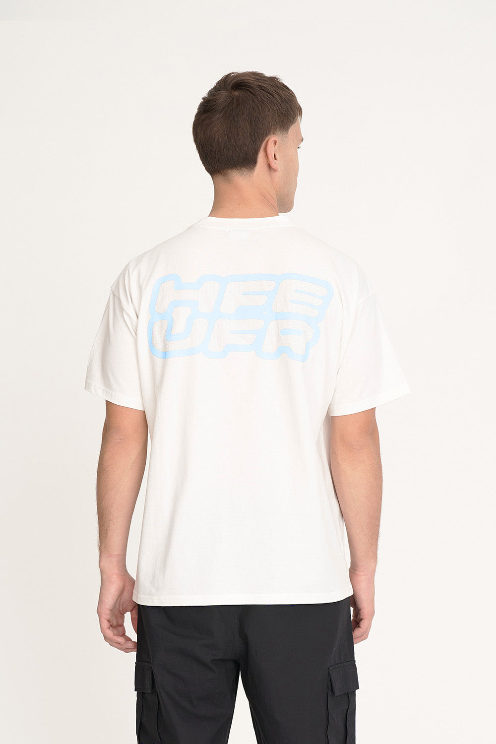 • What you need to know: 220gsm 100% Cotton, 25mm neck rib, premium weight jersey, short sleeve, boxy fit with Huffer branded placement screenprint