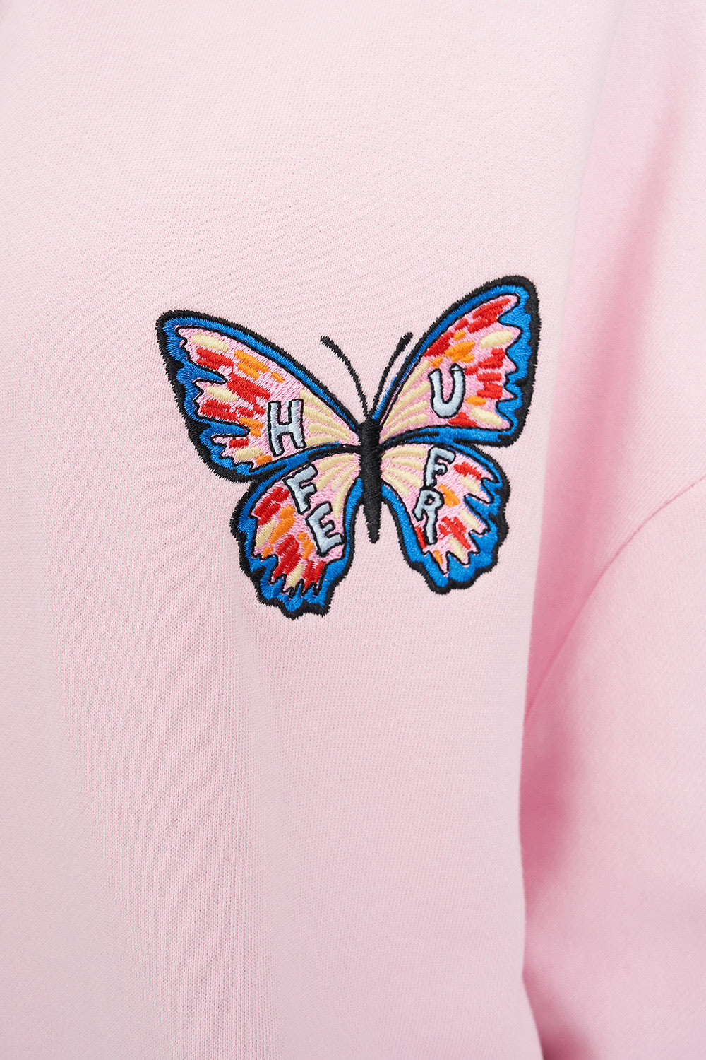 • What you need to know: 50% Cotton 50% Polyester, 320gsm, Mid-weight brushback fleece, Custom Huffer colour, Boxy fit, Huffer branded hardware, Huffer branded placement screenprint and embroidery