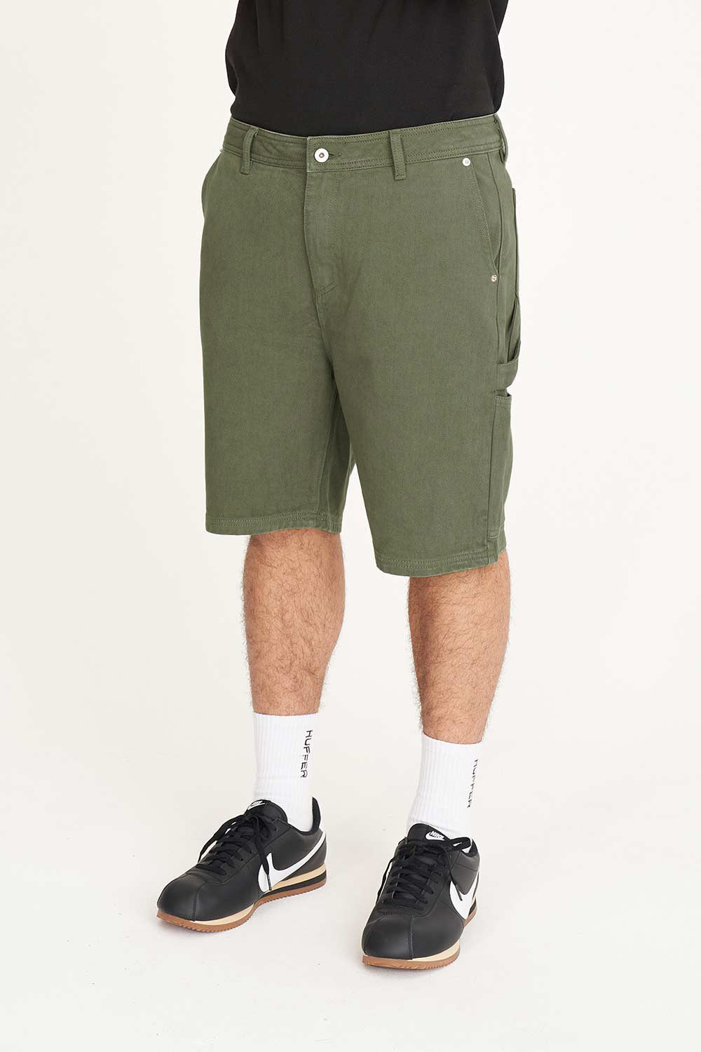 • What you need to know: 100% Cotton 12oz Denim, relaxed streetwear fit, stone and enzyme washed, fixed waistband with fly and button closure, hammer loop, front side angle pockets, side leg patch pocket with Huffer branded woven label