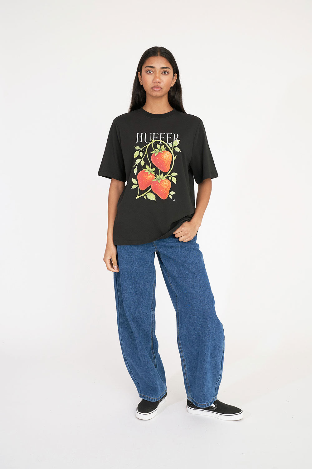 • What you need to know: 100% cotton, 190gsm premium weight jersey, 20mm neck rib, boxy oversized fit, short sleeve, Huffer branded placement print.