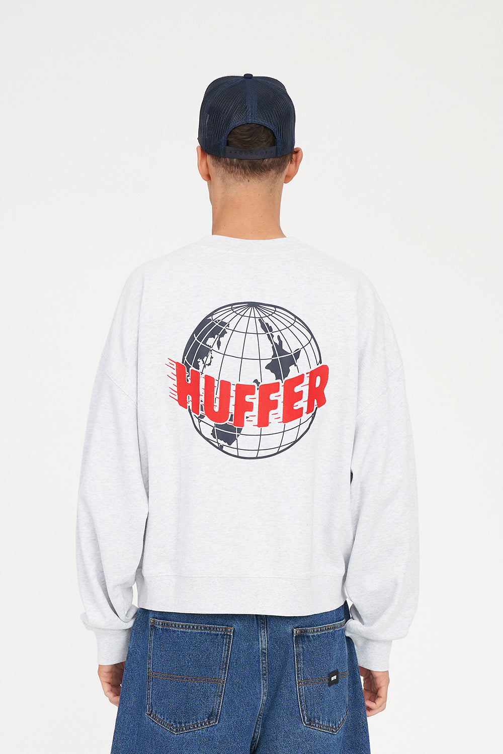 • What you need to know: 100% Cotton, 350gsm, 25mm neck rib, Mid-weight loopback, Boxy fit, Huffer branded placement screenprint & embroidery