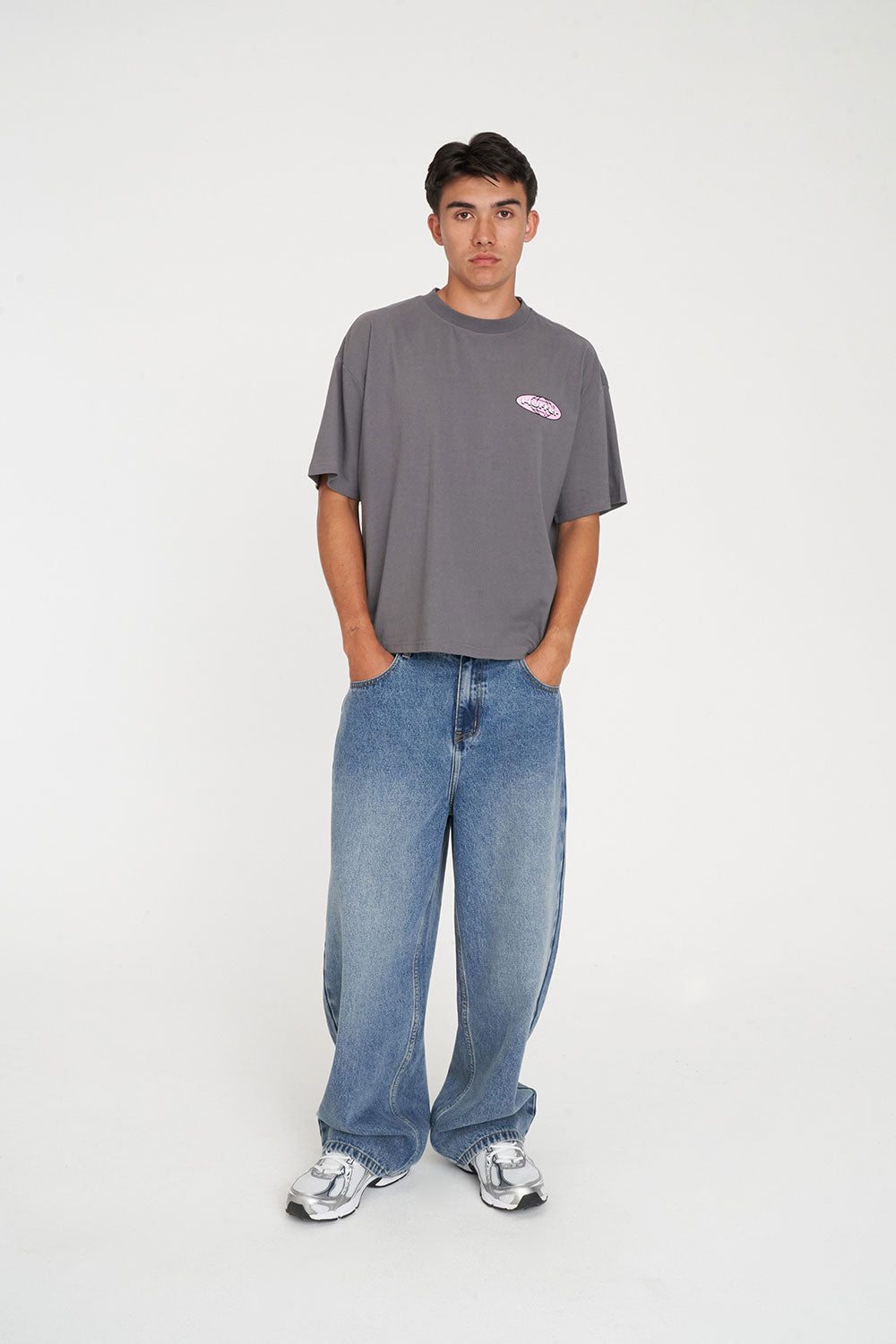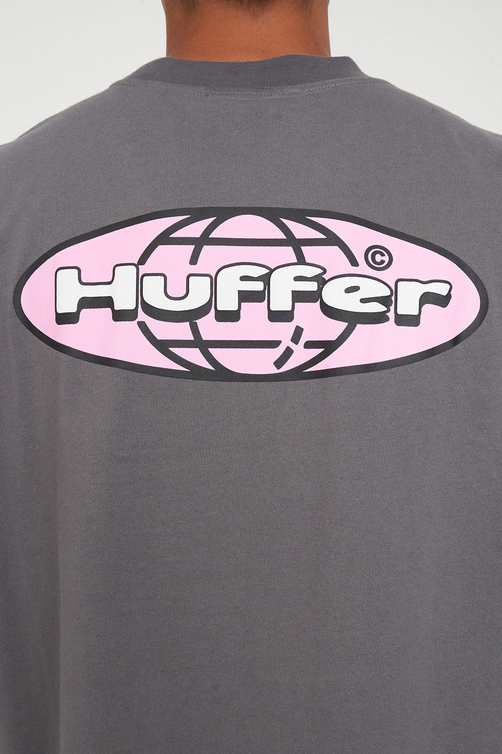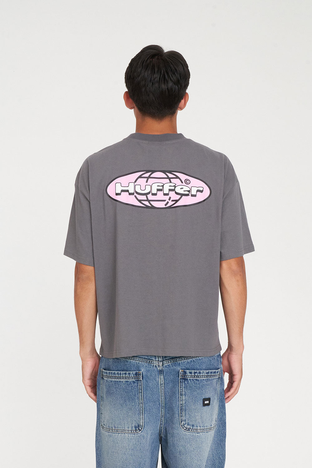 • What you need to know: 100% Cotton, 220gsm, 25mm Neck rib, Boxy cropped fit, Short sleeve, Huffer branded placement screenprint & puff print