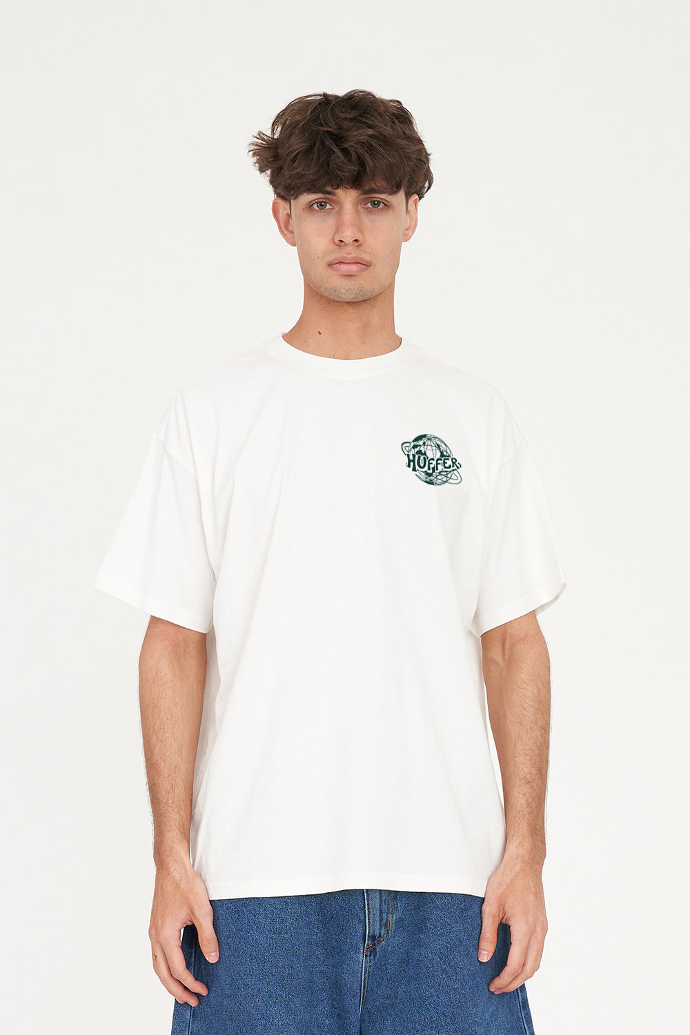 • What you need to know: 100% Cotton, 220gsm, 25mm Neck rib, Premium weight jersey, Boxy fit, Short sleeve, Huffer branded placement screenprint
