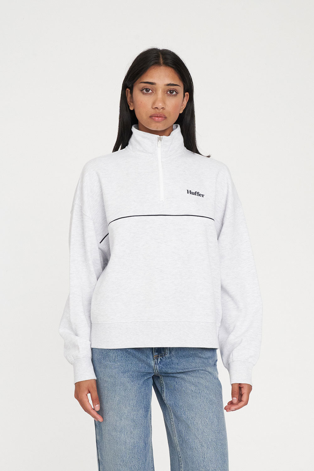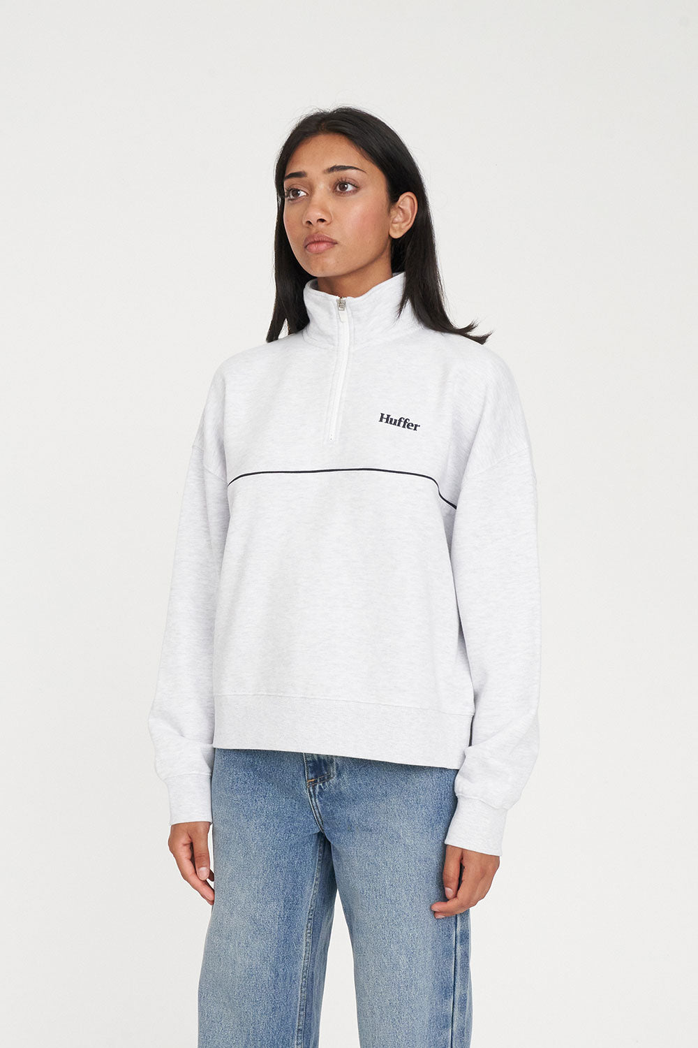 • What you need to know: 60% Cotton 40% Polyester, 300gsm, Mid-weight brushback fleece, High neck with zip opening, Boxy fit, Huffer branded placement