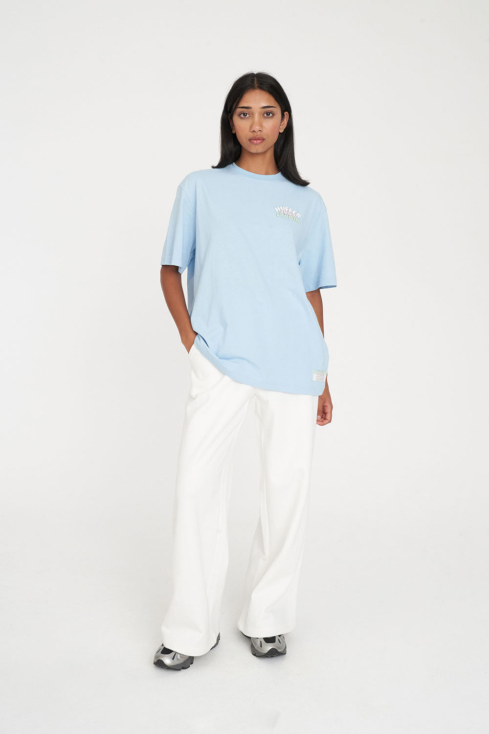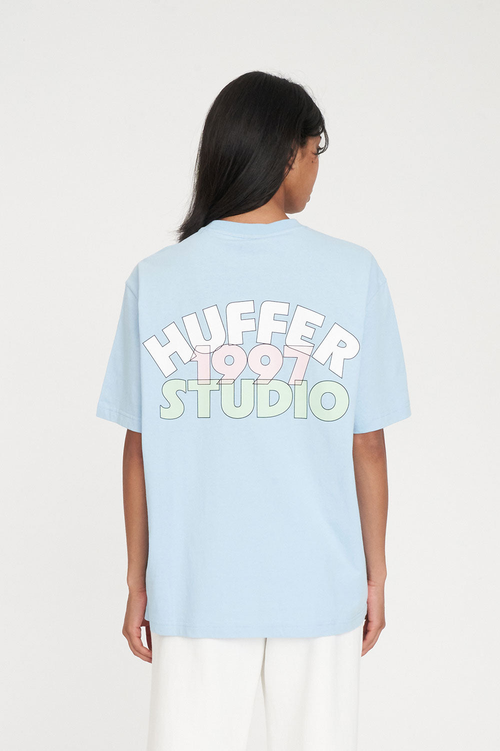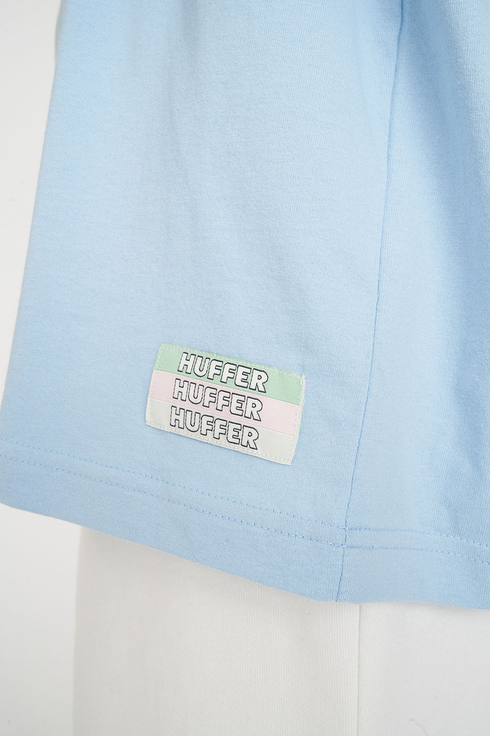• What you need to know: 100% Cotton, 220gsm, 20mm Neck rib, Premium weight jersey, Boxy oversized fit, Short sleeve, Huffer branded placement screenprint