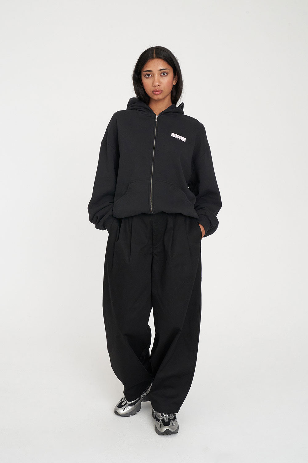 • What you need to know: 100% Cotton, 350gsm, Mid-weight brushback fleece, Custom Huffer colour, Relaxed fit, Kangaroo pocket, Huffer branded hardware, Huffer branded placement screenprint