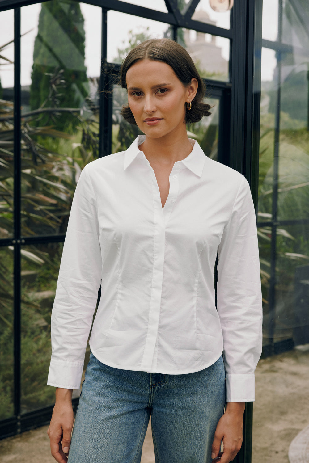 • What you need to know: 97% Cotton 3% Elastane, 117gsm, Fitted silhouette, Long sleeve, Collar and stand, Huffer branded buttons