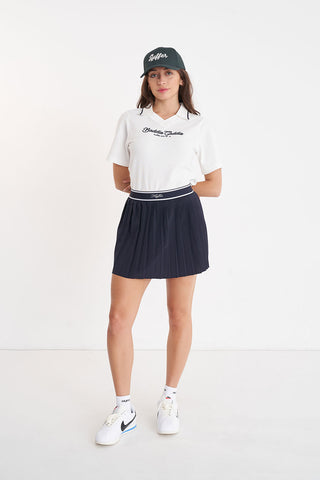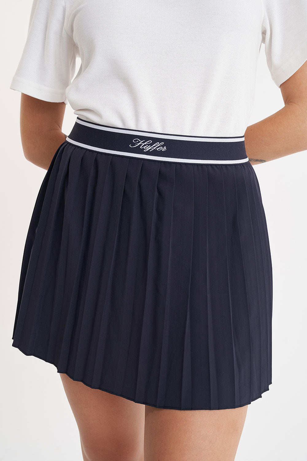 Outer: 90% Polyester 10% Spandex / 130gsm / Mini length / A-line Skirt / knife Pleats / Custom Huffer branded elastic / Built in bike short with side pockets