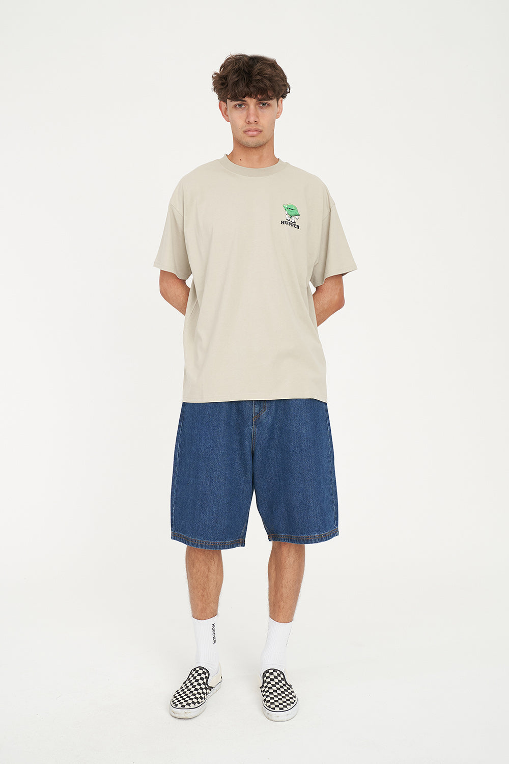 • What you need to know: 100% Cotton, 220gsm, 25mm Neck rib, Premium weight jersey, Boxy fit, Short sleeve, Huffer branded placement screenprint