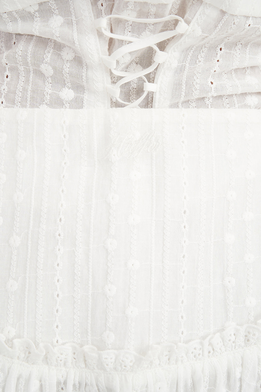 • What you need to know: 100% Cotton, 90gsm, Broderie anglaise, Tiered skirt, Side zip opening, Lace detail on front & back yoke, Huffer branded placement embroidery
