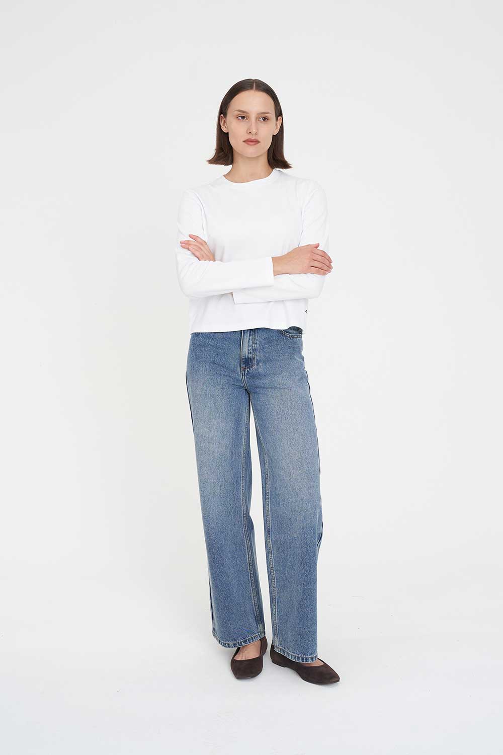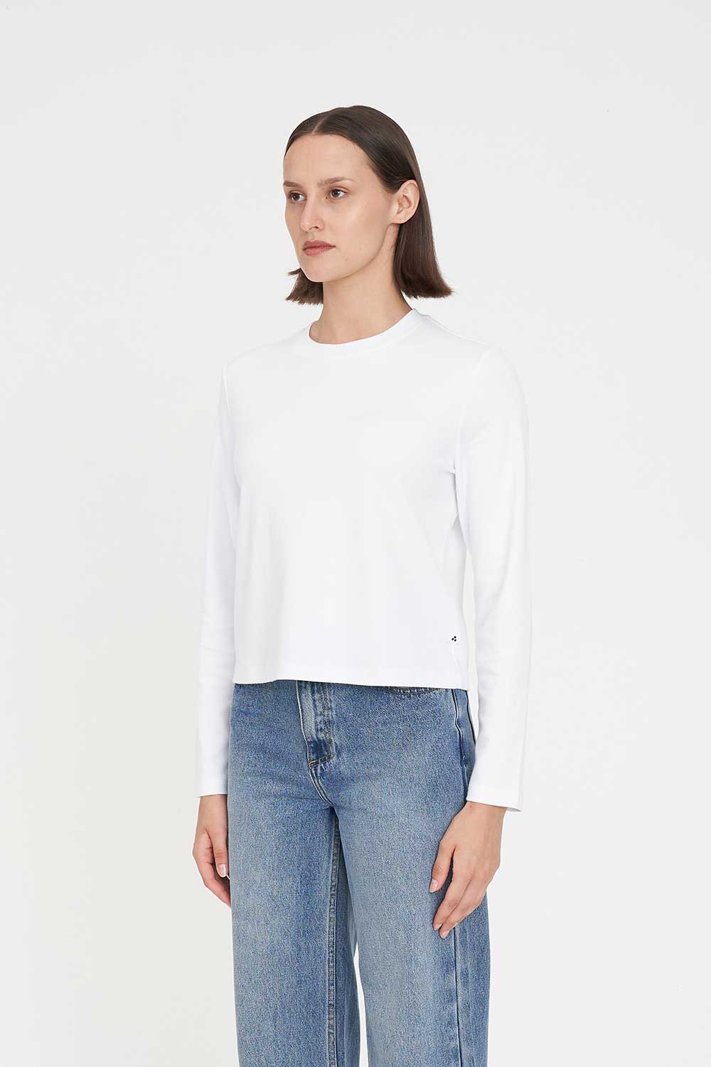 • What you need to know: 100% Cotton, 210gsm, 18mm Neck rib, Premium-weight interlock, Classic fit, Long sleeve, Huffer branded embroidery badge