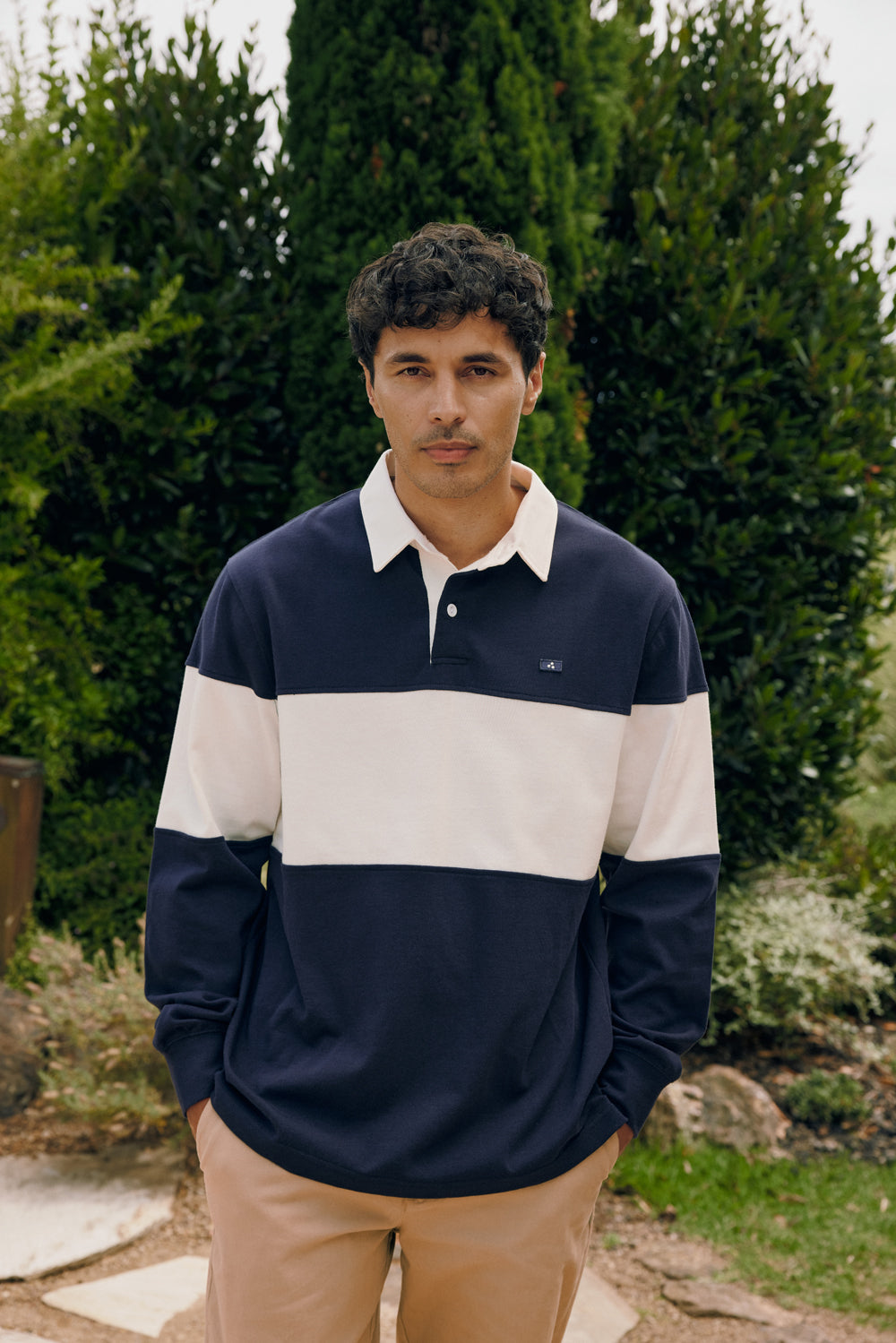 • What you need to know: 100% Cotton, 280gsm, Rugby knit, Classic fit, Contrast drill collar and chest panel, Ribbed cuffs, Long sleeve, Huffer branded embroidery badge