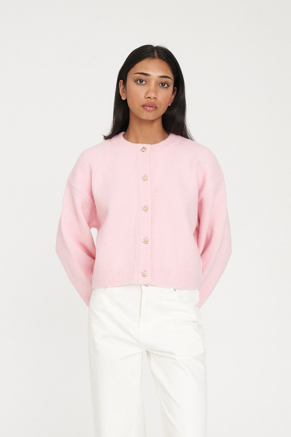 ELLE CROP CARDIGAN PALE ROSE
