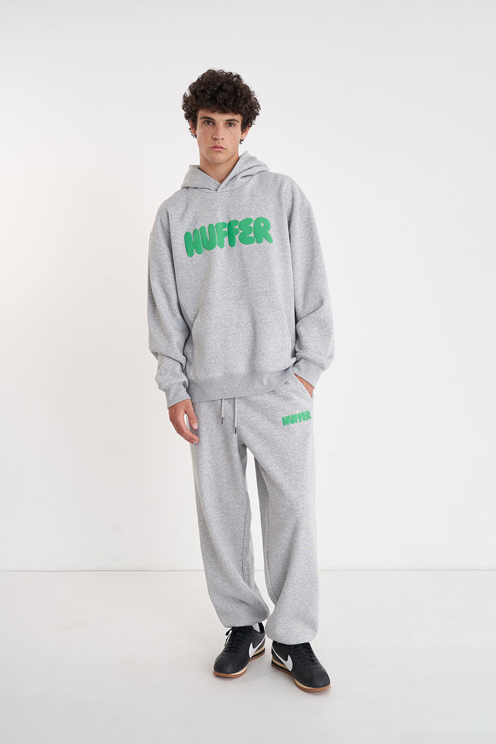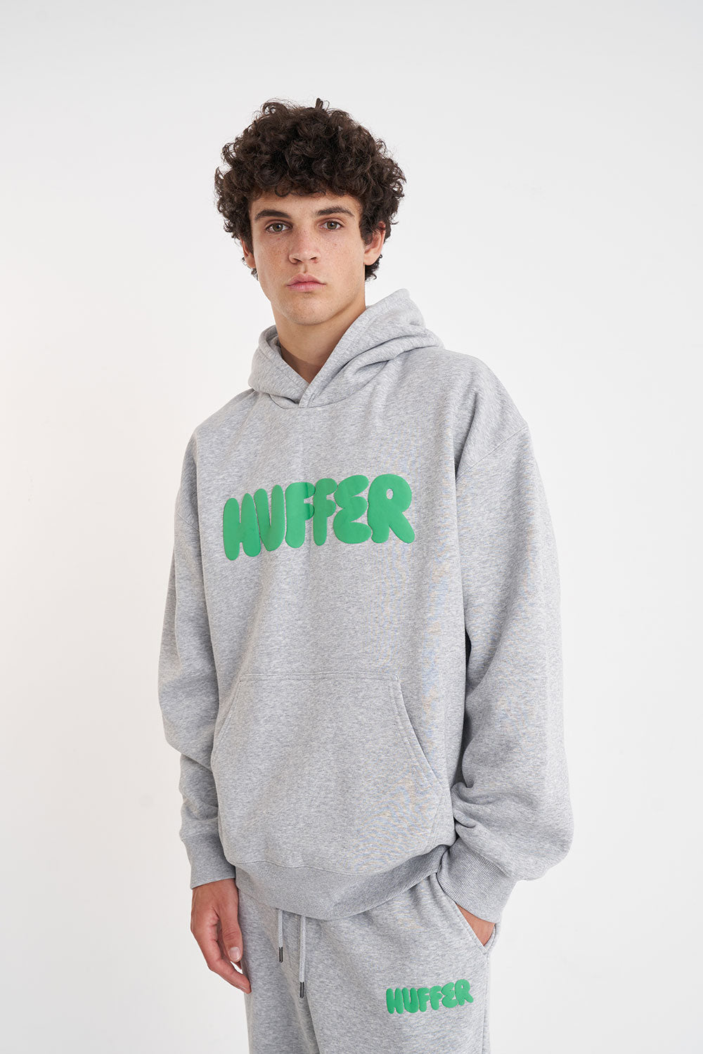 50% Cotton 50% Polyester / 320gsm / Mid-weight brushback fleece / Custom Huffer colour / Boxy fit / Kangaroo pocket / Huffer branded hardware / Huffer branded placement print