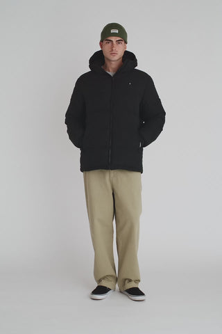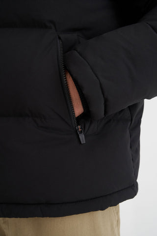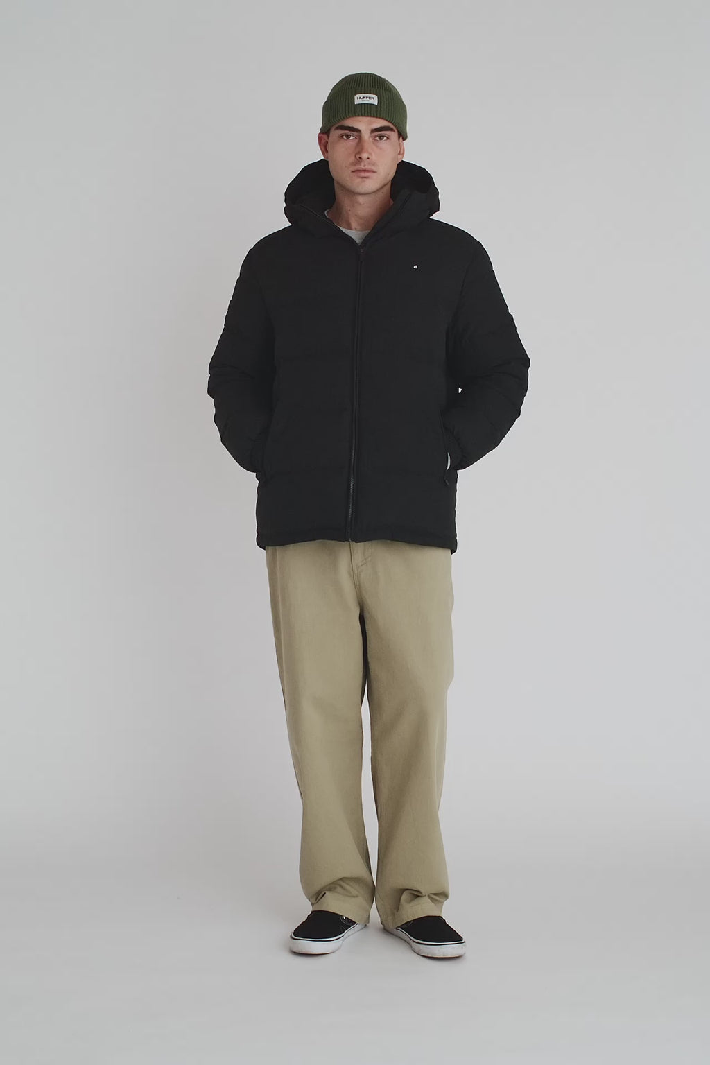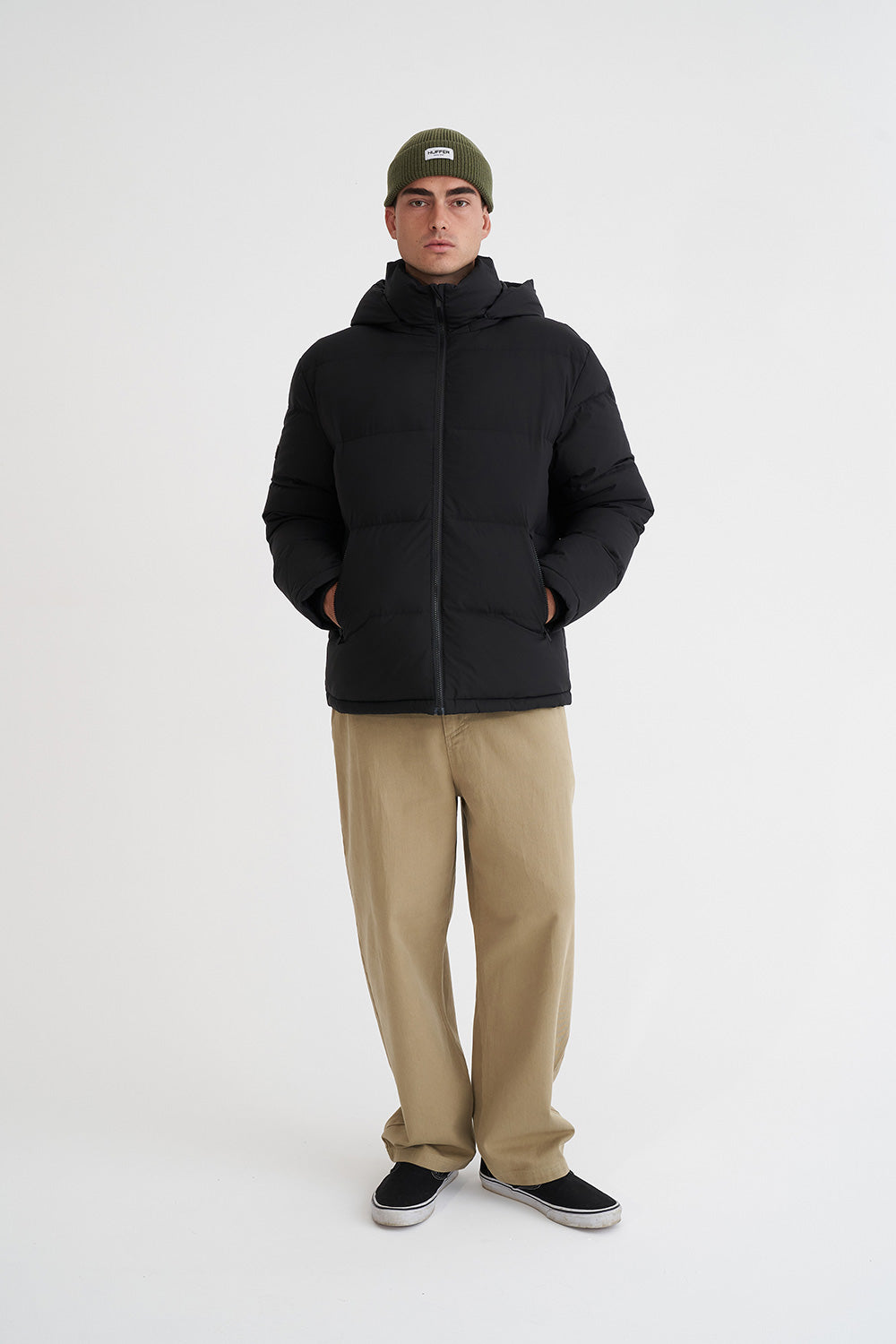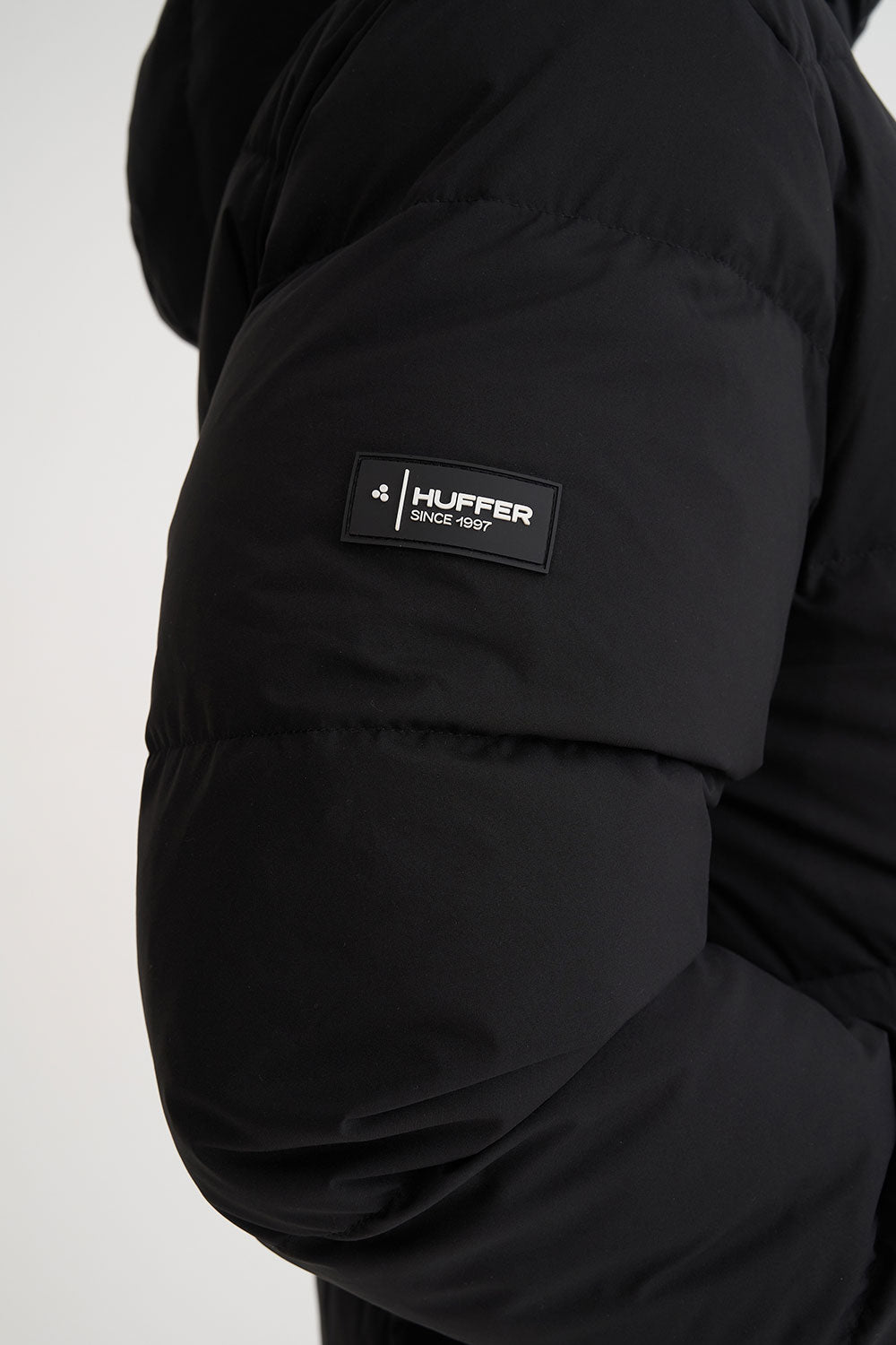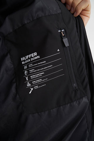 The Huffer Block Down Jacket delivers superior warmth with 650 Fill power RDS certified by CU 862419, 90% Duck Down, 10% Duck Feather fill. Light weight, peached finished, 100% polyester outer shell with Durable Water Resistant (DWR) coating allowing water to bead off the outer shell. Features 7 layer down proof chamber technology, detachable hood and chin guard collar for maximum protection. Made with Japanese technology YKK zips and Huffer superior toasty pocket lining.