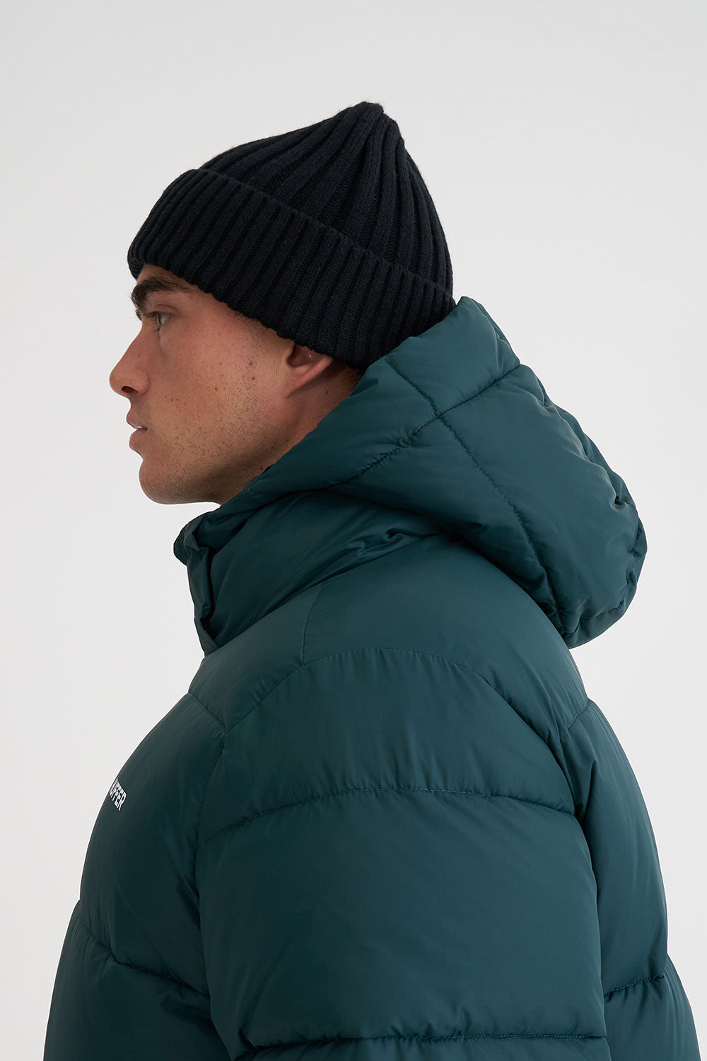 • Standard length Puffer jacket with good coverage, elasticated hem to create extra lofty fit. 100% Nylon outer shell with Durable Water Resistant (DWR) coating allowing water to bead off the outer shell.