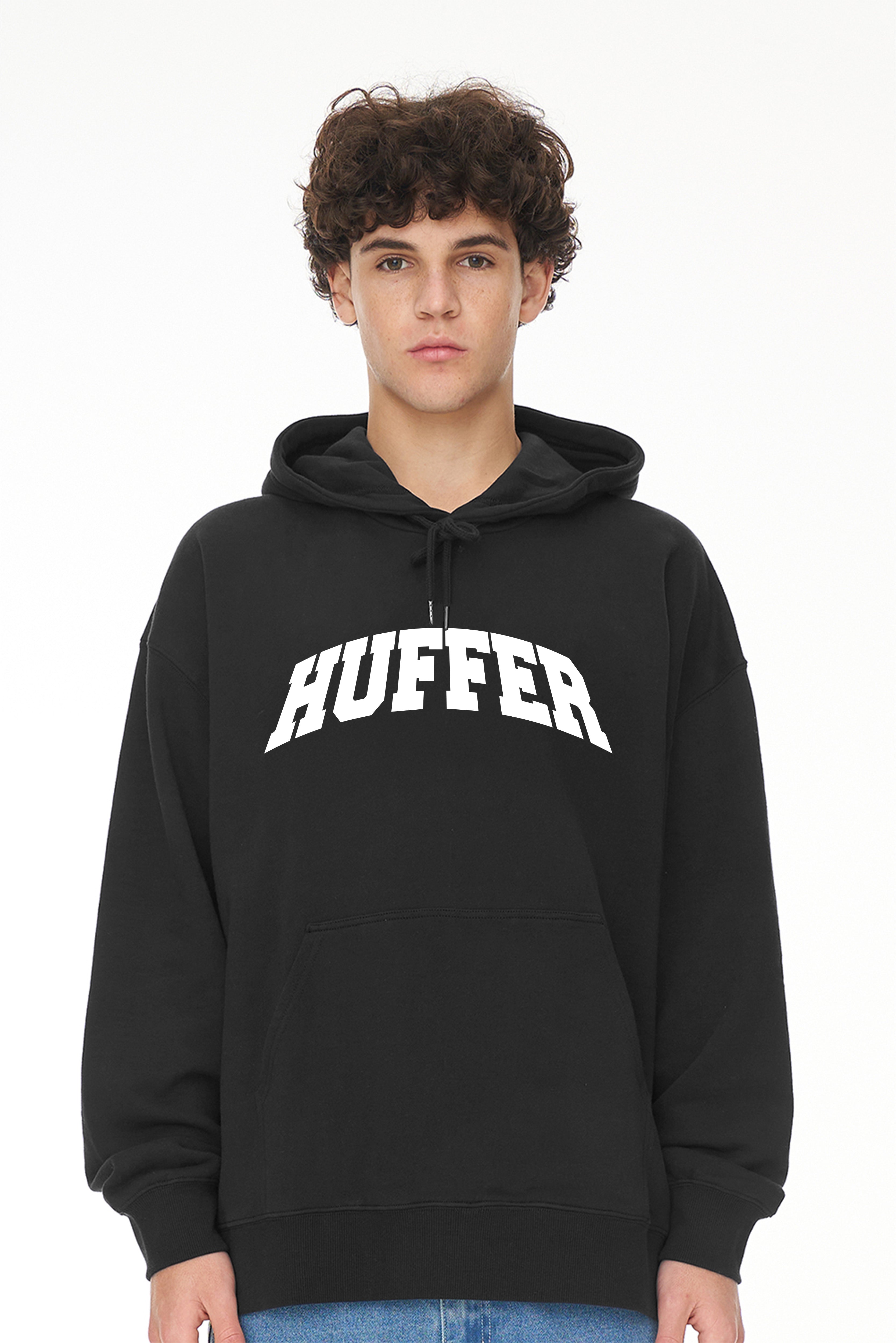 60% Cotton, 40% Polyester / 300gsm / Mid weight brushback fleece / Self-lined hood / Front kanga pocket detail / Classic fit / Huffer placement print