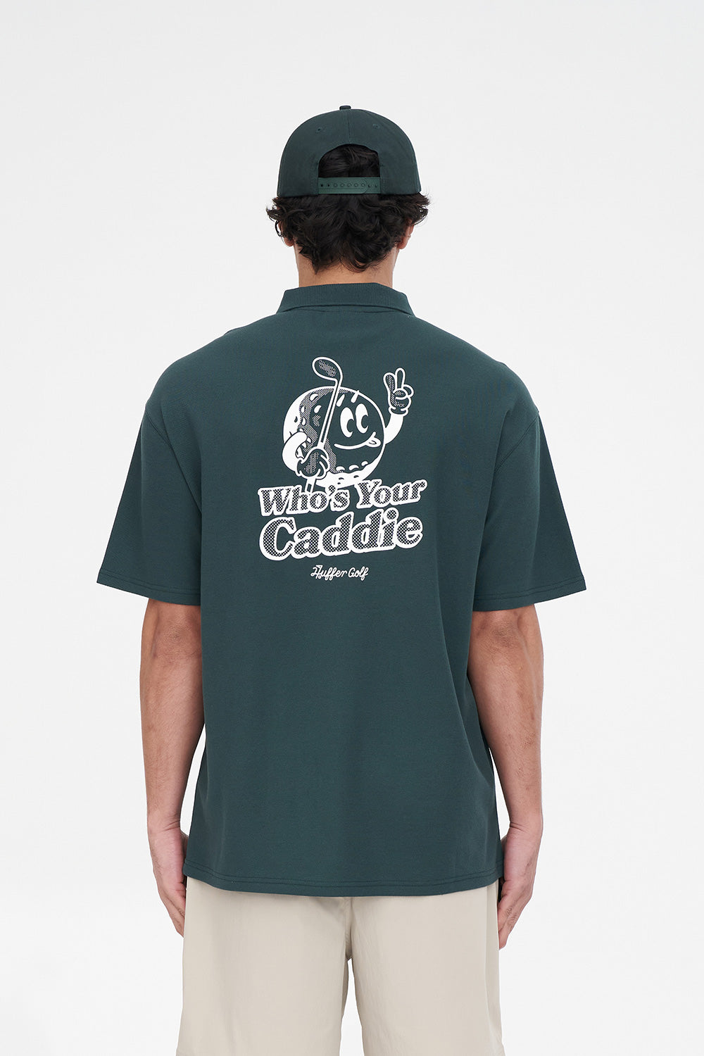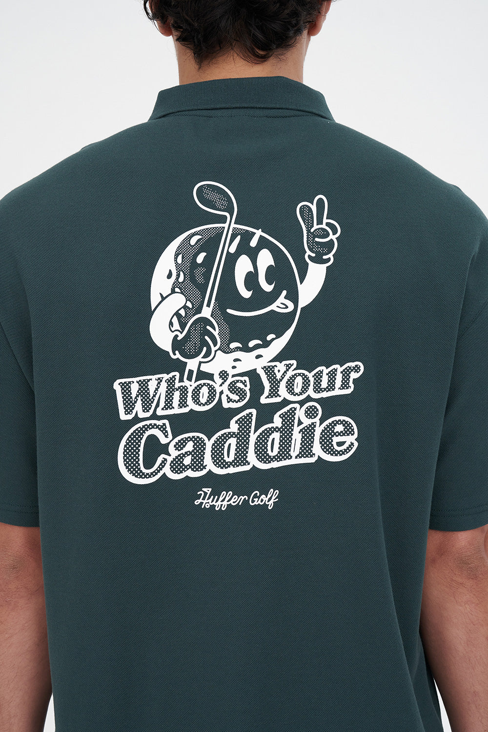 • Here’s what you should know: Performance Polo that tees up golf core with street cred. 60% cotton 40% polyester pique – soft hand feel cotton-poly pique and cut in a boxy fit, it’s made for smooth swings and even smoother banter. With a clean rib collar, classic button placket, and a big statement on the back—WHO’S YOUR CADDIE—this one’s built for golfers who like to talk the talk and walk the walk.